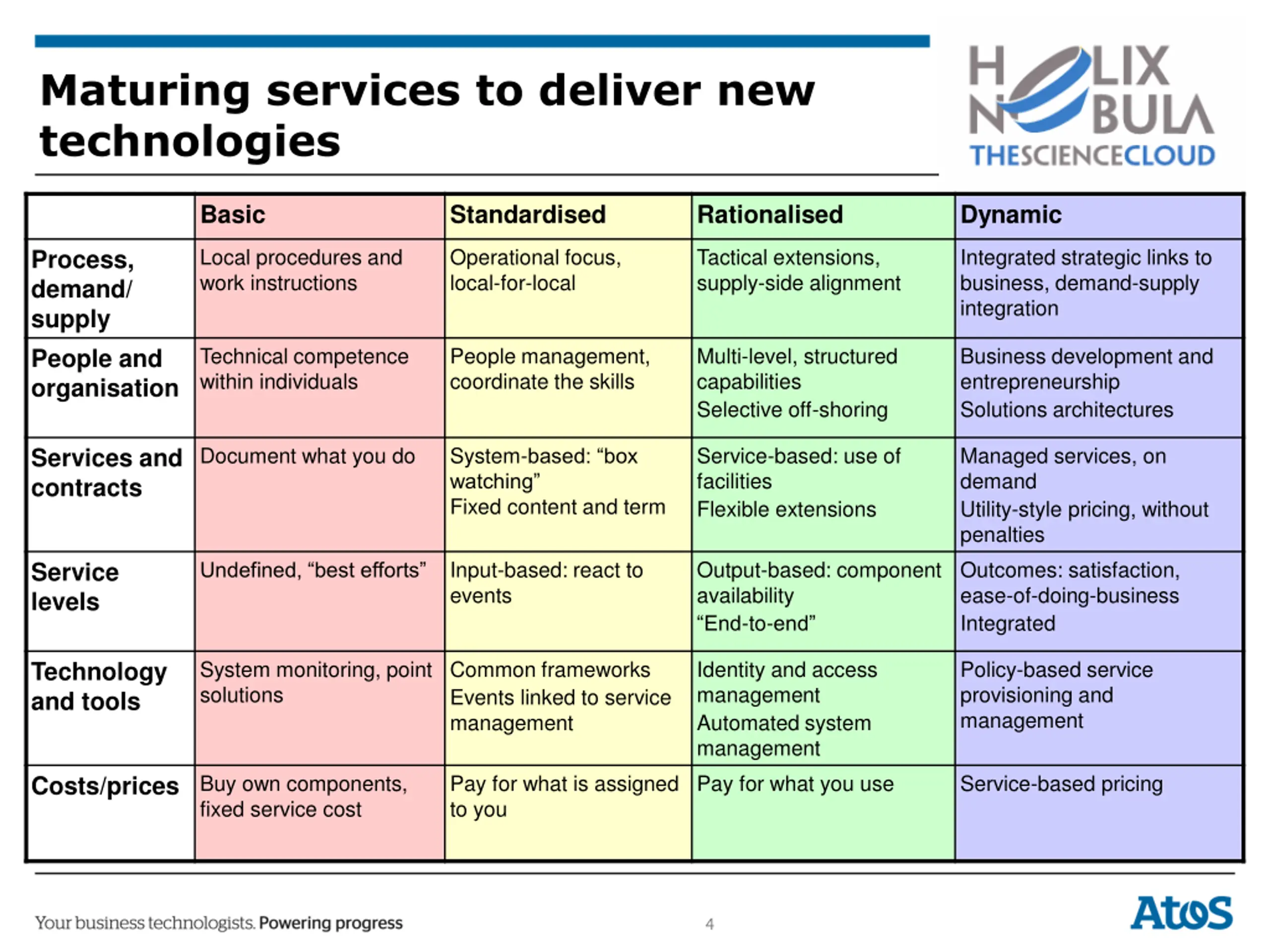 04/04/2025 Mick Symonds Confidential General outline European Open Science Cloud (or whatever we are calling it) needs to arrange for some mature service capabilities, fast The good news is that enterprises were doing this about 10-15 years ago, and you can learn from their (and our) experience The services need to be of usable quality and industrial strength: defined, with levels, reporting, costs and/or prices, etc. scalable: not dependent on a few people supported, end-to-end, 7 * 24 * forever Various proven models are available to be used, e.g.: demand/supply structures, with processes and RACI instruments for service deployment and transition maturity models, because you can t just stop 1