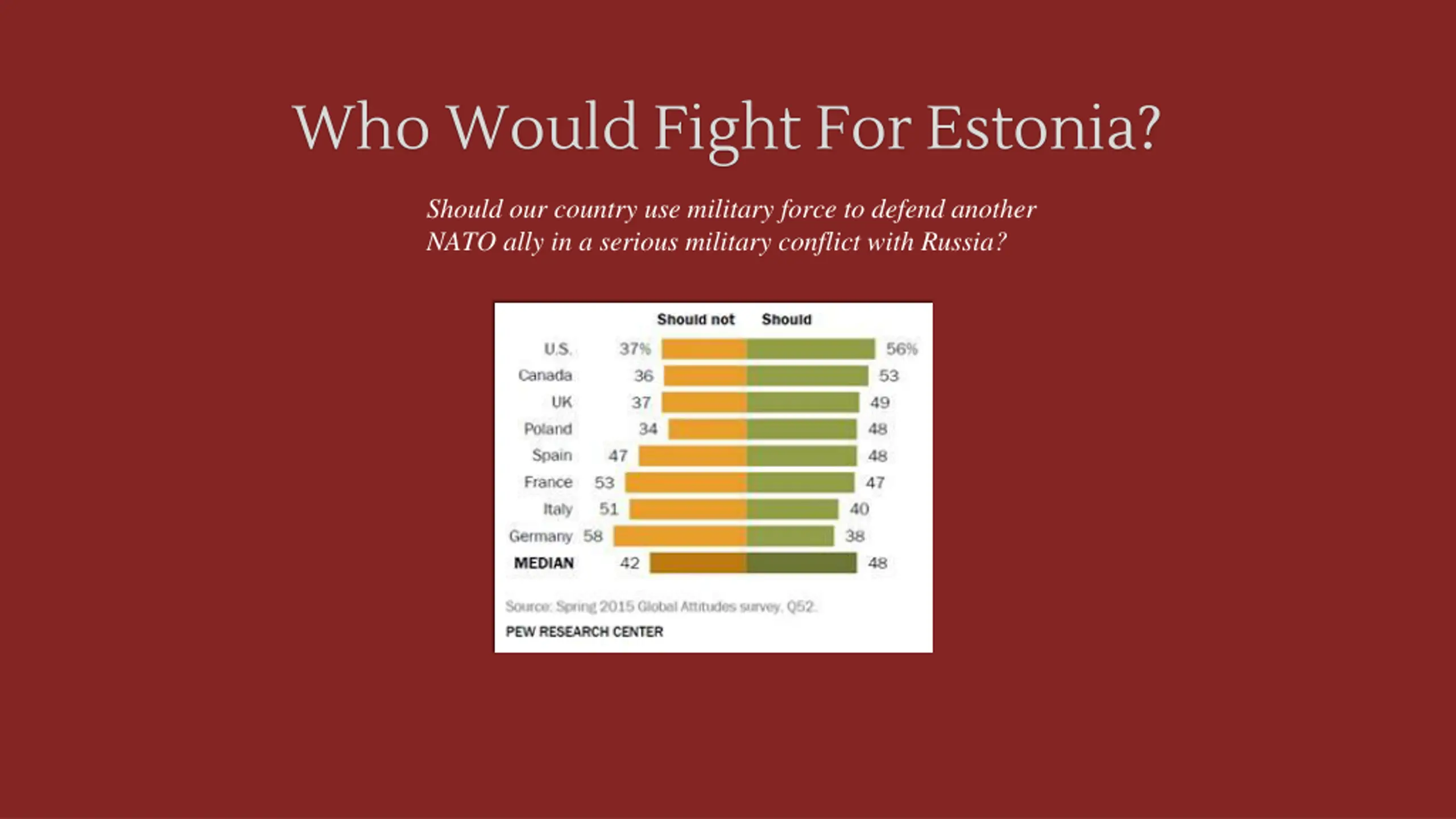 Who Would Fight For Estonia? Should our country use military force to defend another NATO ally in a serious military conflict with Russia?