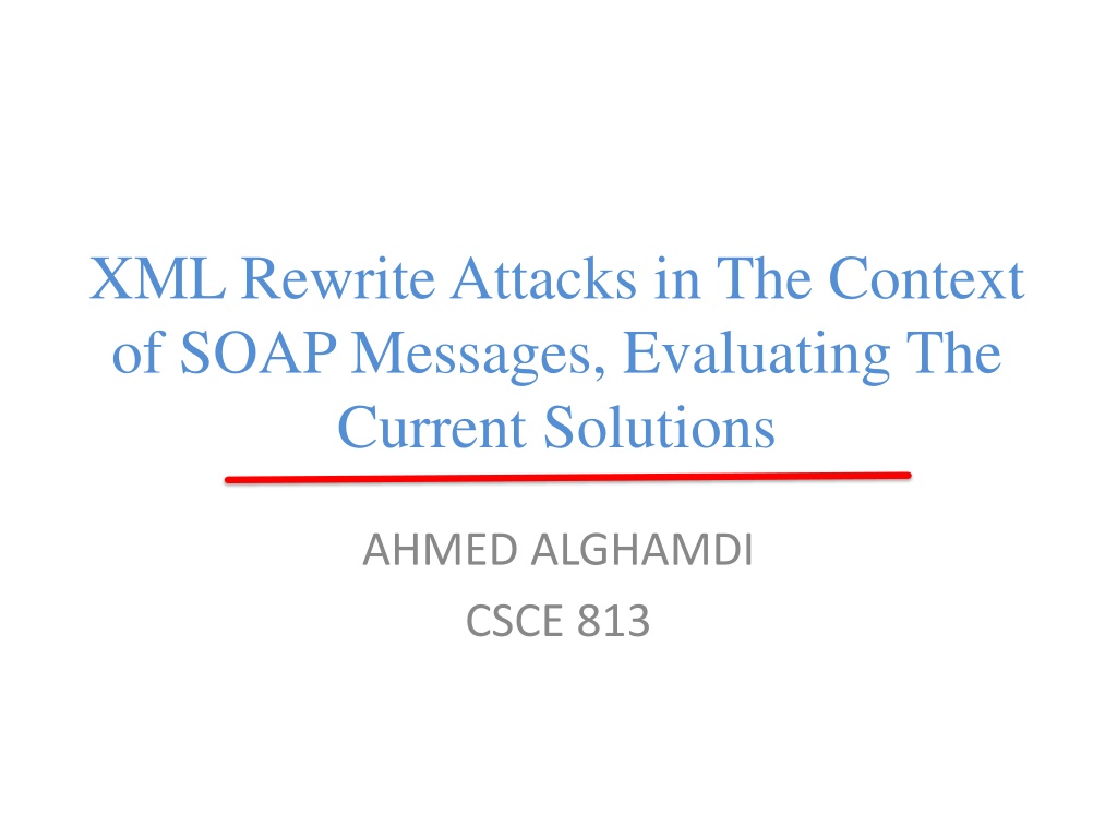 XML Rewrite Attacks in The Context of SOAP Messages, Evaluating The Current Solutions AHMED ALGHAMDI CSCE 813