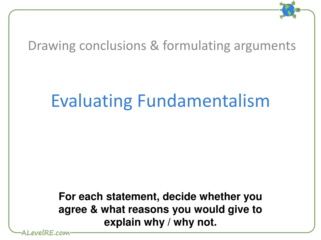 Drawing conclusions & formulating arguments Evaluating Fundamentalism For each statement, decide whether you agree & what reasons you would give to explain why / why not.