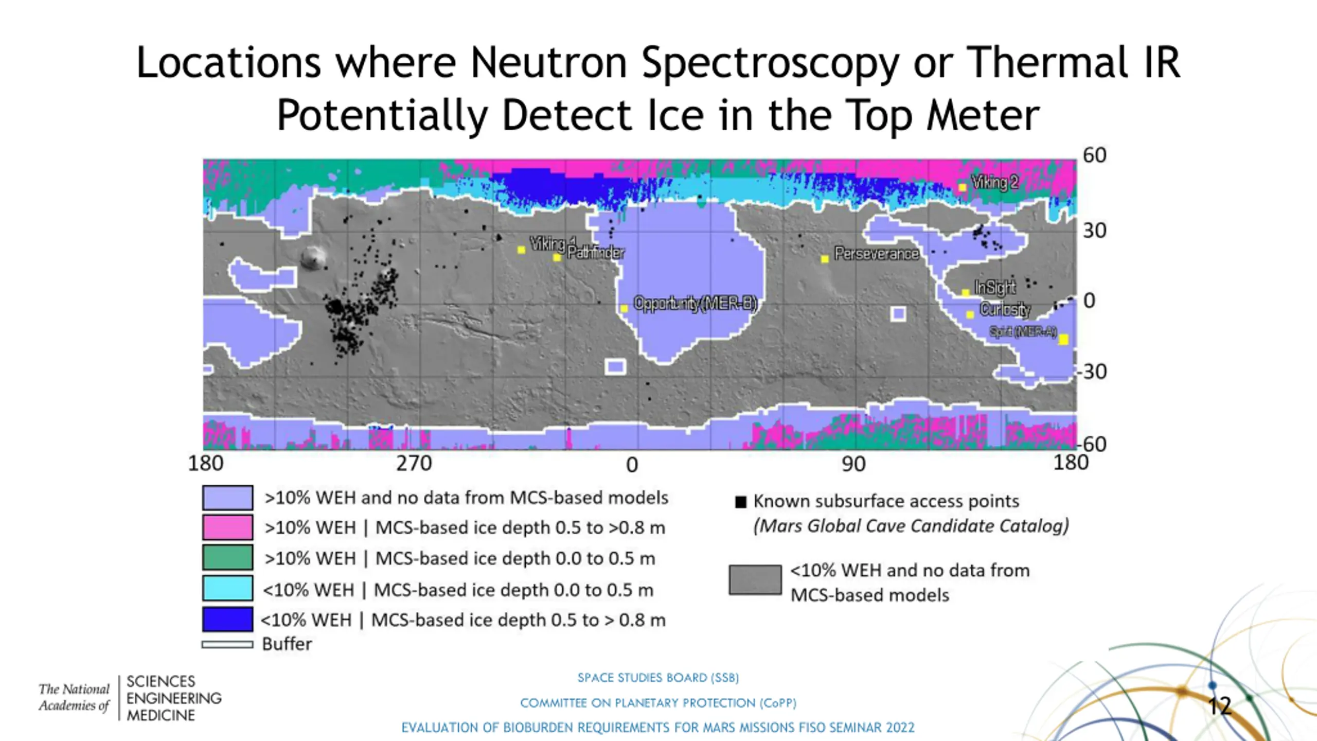 Locations where Neutron Spectroscopy or Thermal IR Potentially Detect Ice in the Top Meter SPACE STUDIES BOARD (SSB) 12 COMMITTEE ON PLANETARY PROTECTION (CoPP) EVALUATION OF BIOBURDEN REQUIREMENTS FOR MARS MISSIONS FISO SEMINAR 2022