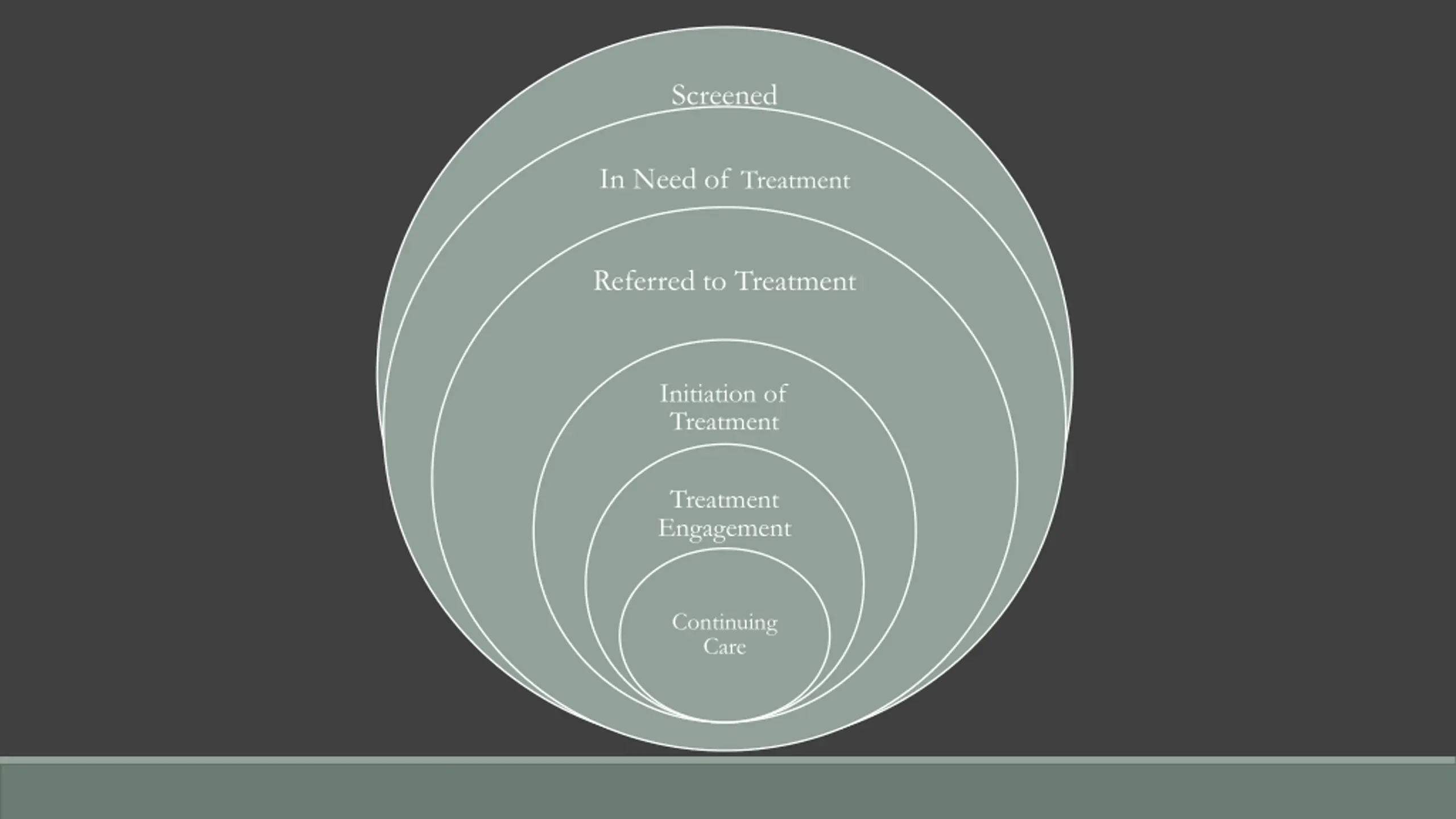Screened In Need of Treatment Referred to Treatment Initiation of Treatment Treatment Engagement Continuing Care