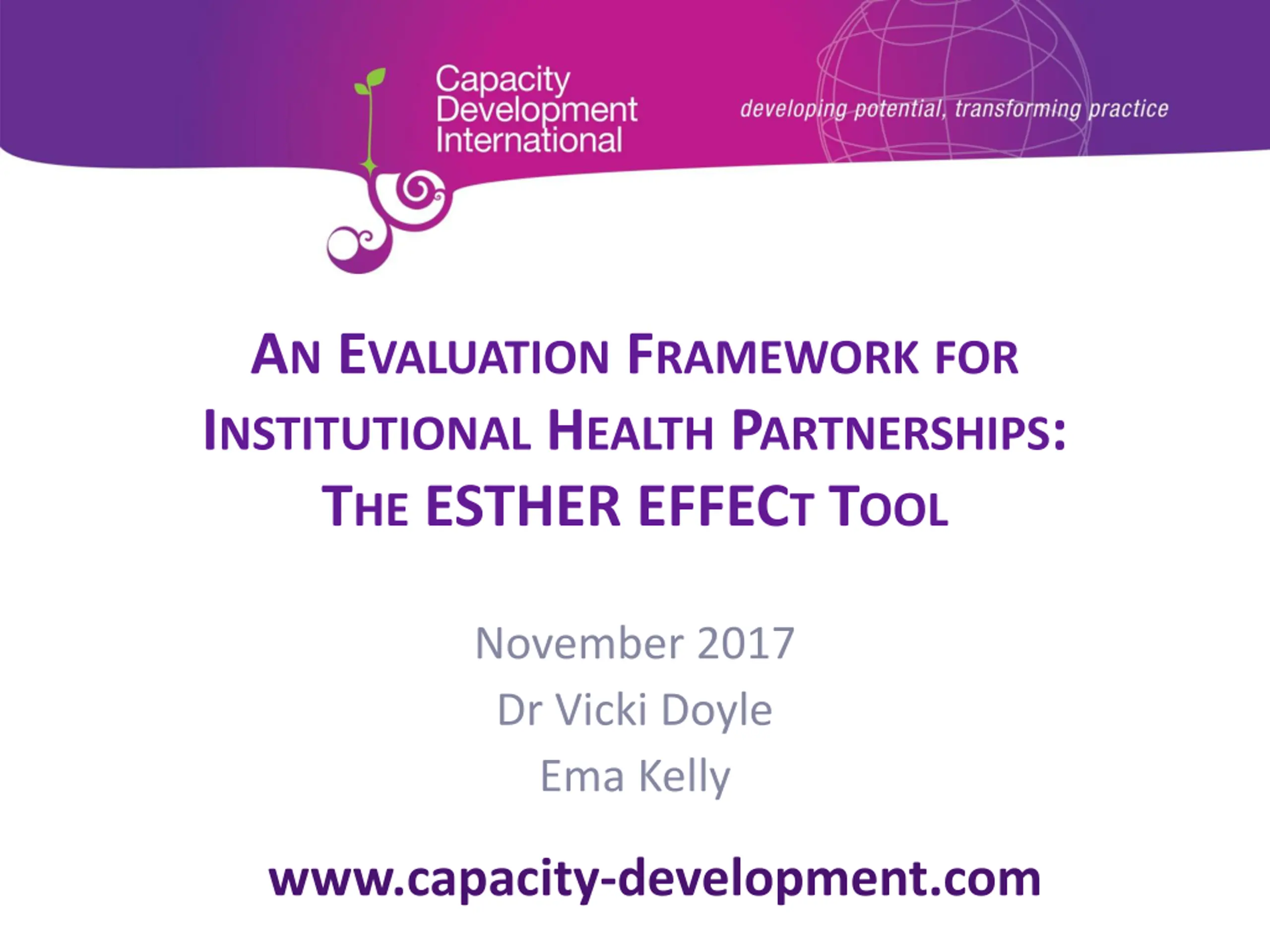 AN EVALUATION FRAMEWORK FOR INSTITUTIONAL HEALTH PARTNERSHIPS: THE ESTHER EFFECT TOOL November 2017 Dr Vicki Doyle Ema Kelly www.capacity-development.com