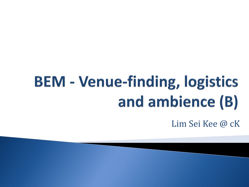 The physical elements, of surroundings, backdrops, props, layout, equipment helps make up what people feel about the event, and will also help determine how the guests interact, how they respond to staff and whether they stay and enjoy themselves. Creating a good ambience = successful event!
