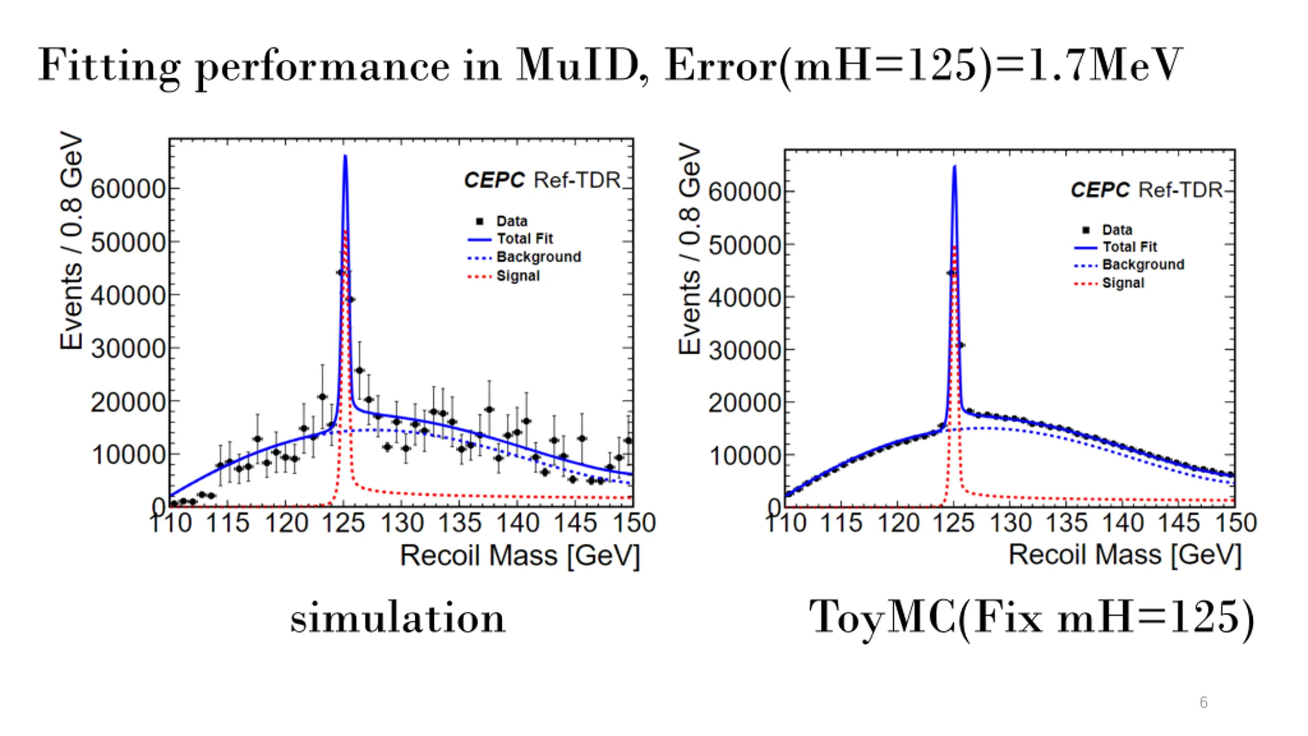 Fitting performance in MuID, Error(mH=125)=1.7MeV simulation ToyMC(Fix mH=125) 6