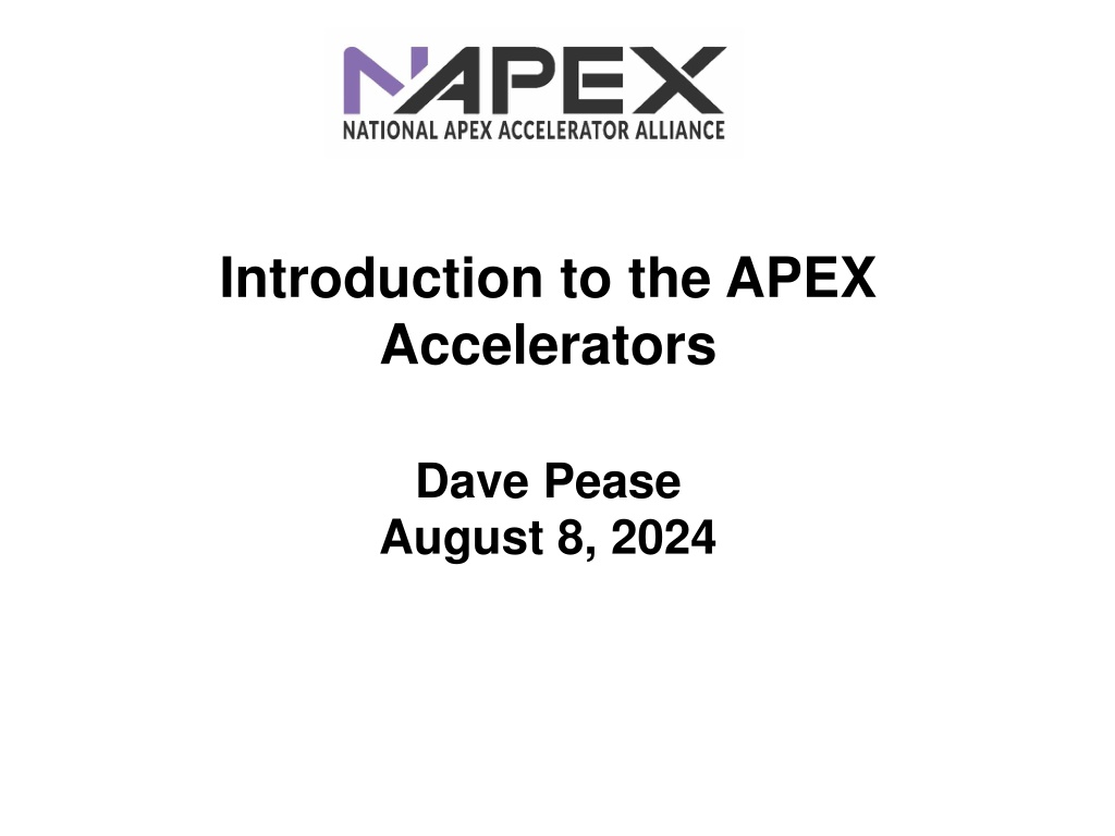 Introduction to the APEX Accelerators Dave Pease August 8, 2024