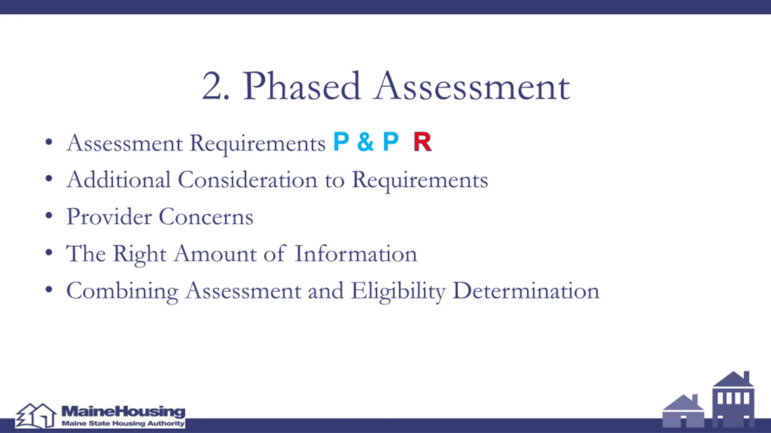 2. Phased Assessment Assessment Requirements P & P R Additional Consideration to Requirements Provider Concerns The Right Amount of Information Combining Assessment and Eligibility Determination