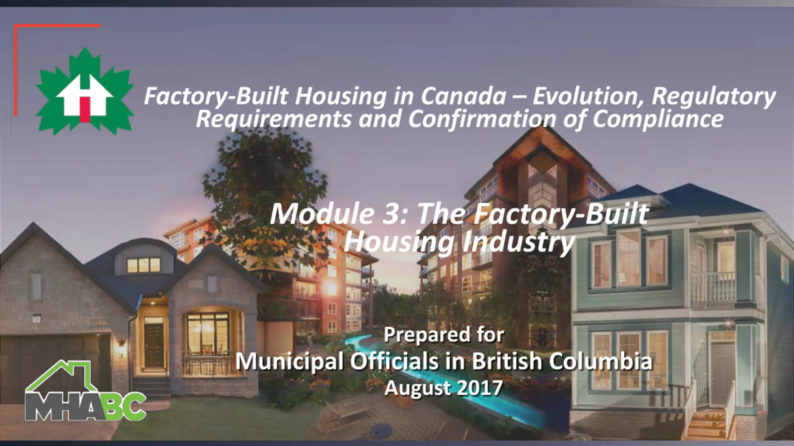 Factory-Built Housing in Canada Evolution, Regulatory Requirements and Confirmation of Compliance Module 3: The Factory-Built Housing Industry Prepared for Municipal Officials in British Columbia August 2017