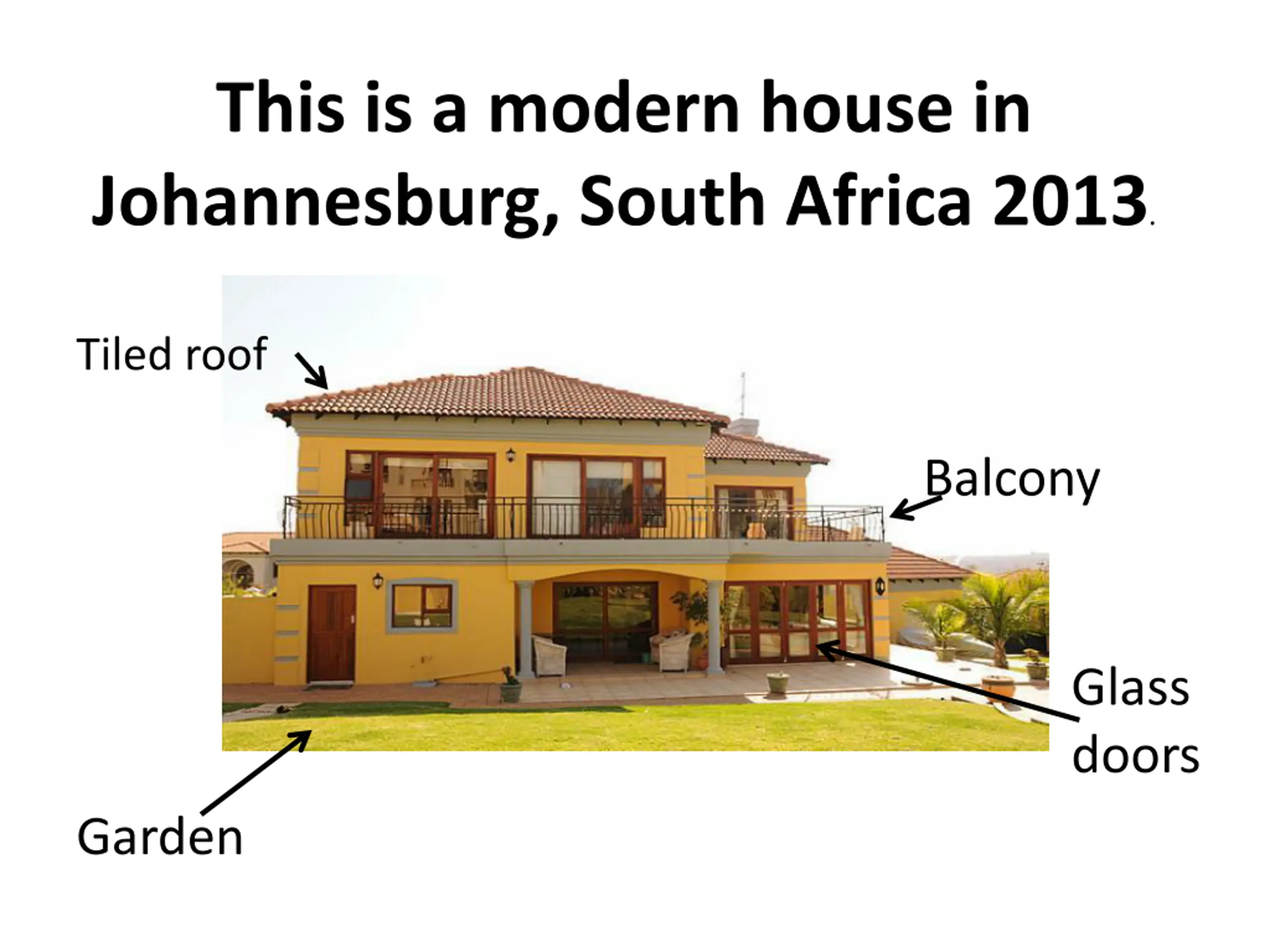 This is a modern house in Johannesburg, South Africa 2013. Tiled roof Balcony Glass doors Garden