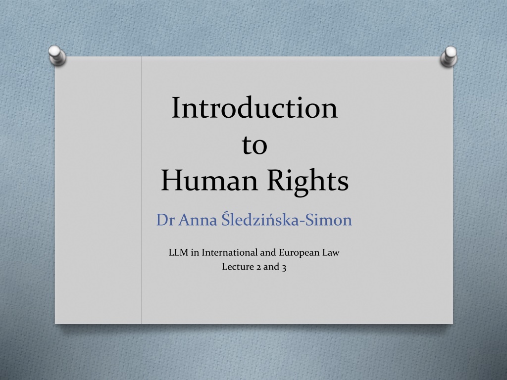 Introduction to Human Rights Dr Anna ledzi ska-Simon LLM in International and European Law Lecture 2 and 3