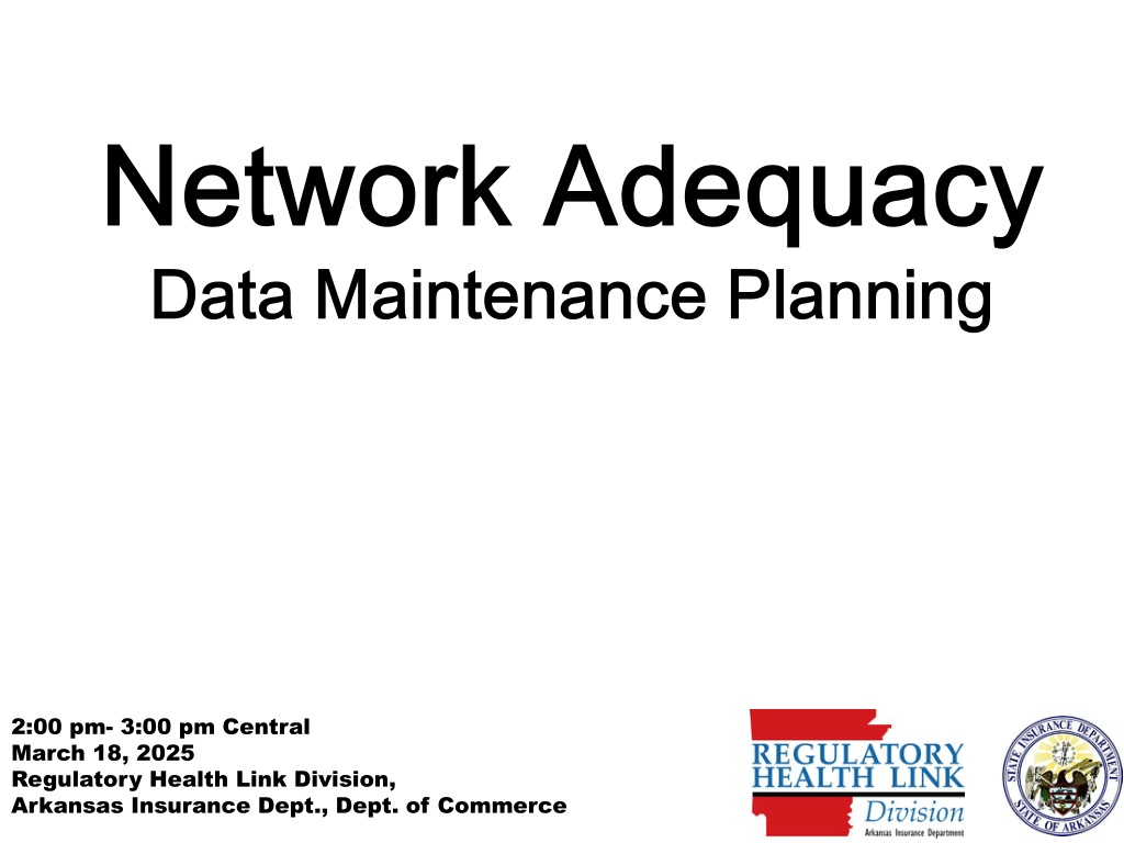 2:00 pm- 3:00 pm Central March 18, 2025 Regulatory Health Link Division, Arkansas Insurance Dept., Dept. of Commerce 1