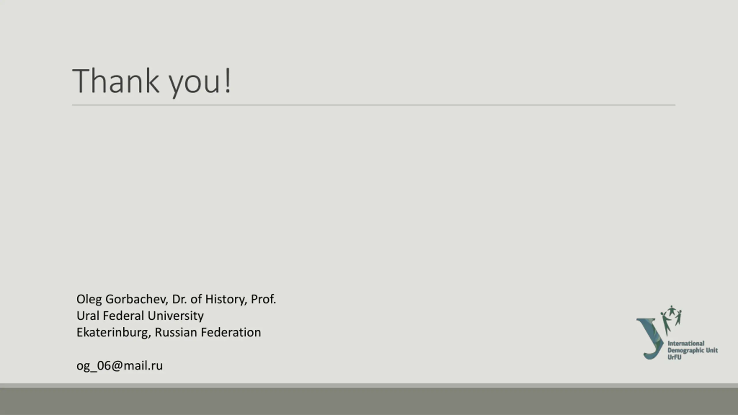 Thank you! Oleg Gorbachev, Dr. of History, Prof. Ural Federal University Ekaterinburg, Russian Federation og_06@mail.ru
