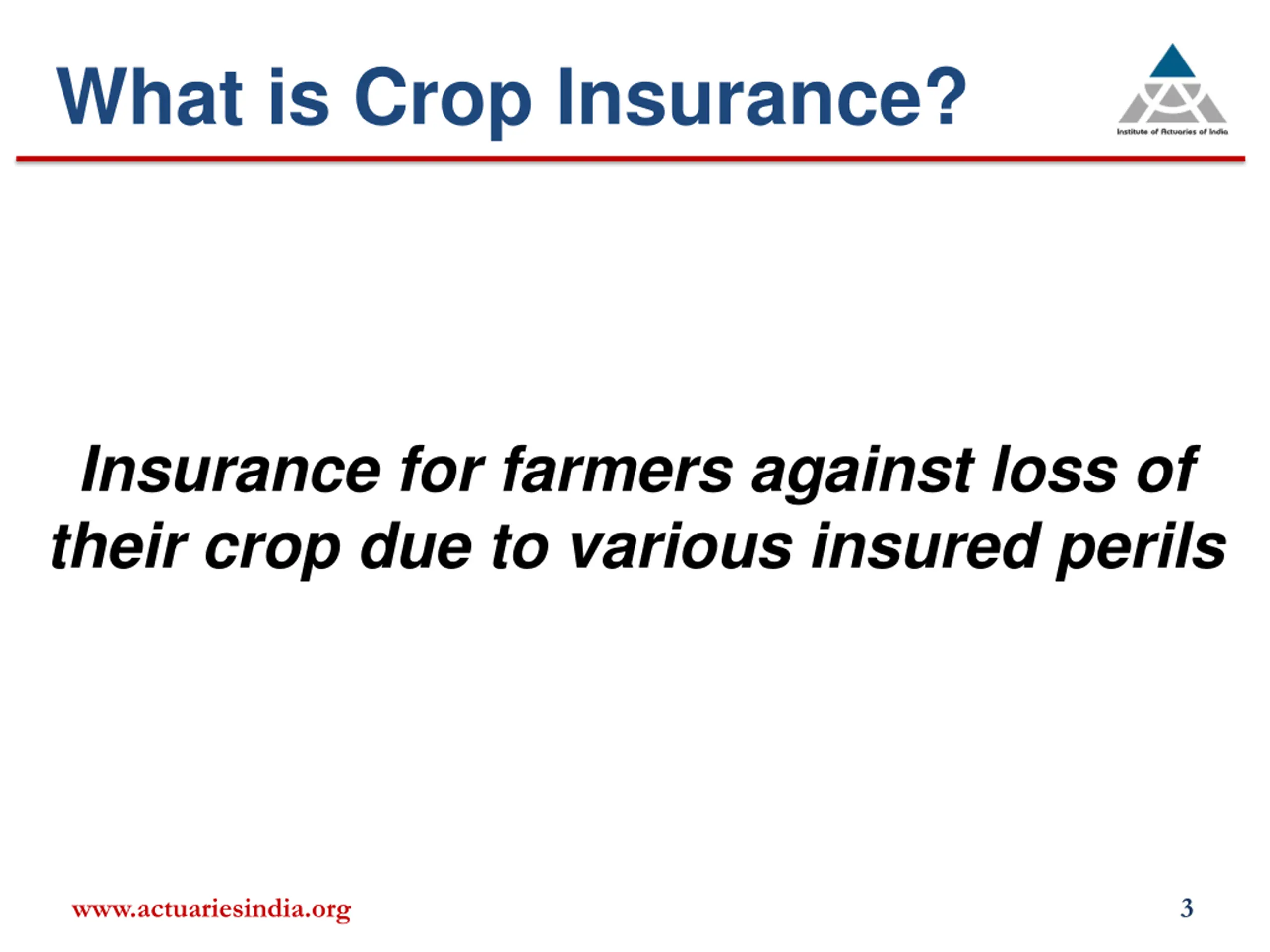 What is Crop Insurance? Insurance for farmers against loss of their crop due to various insured perils www.actuariesindia.org 3