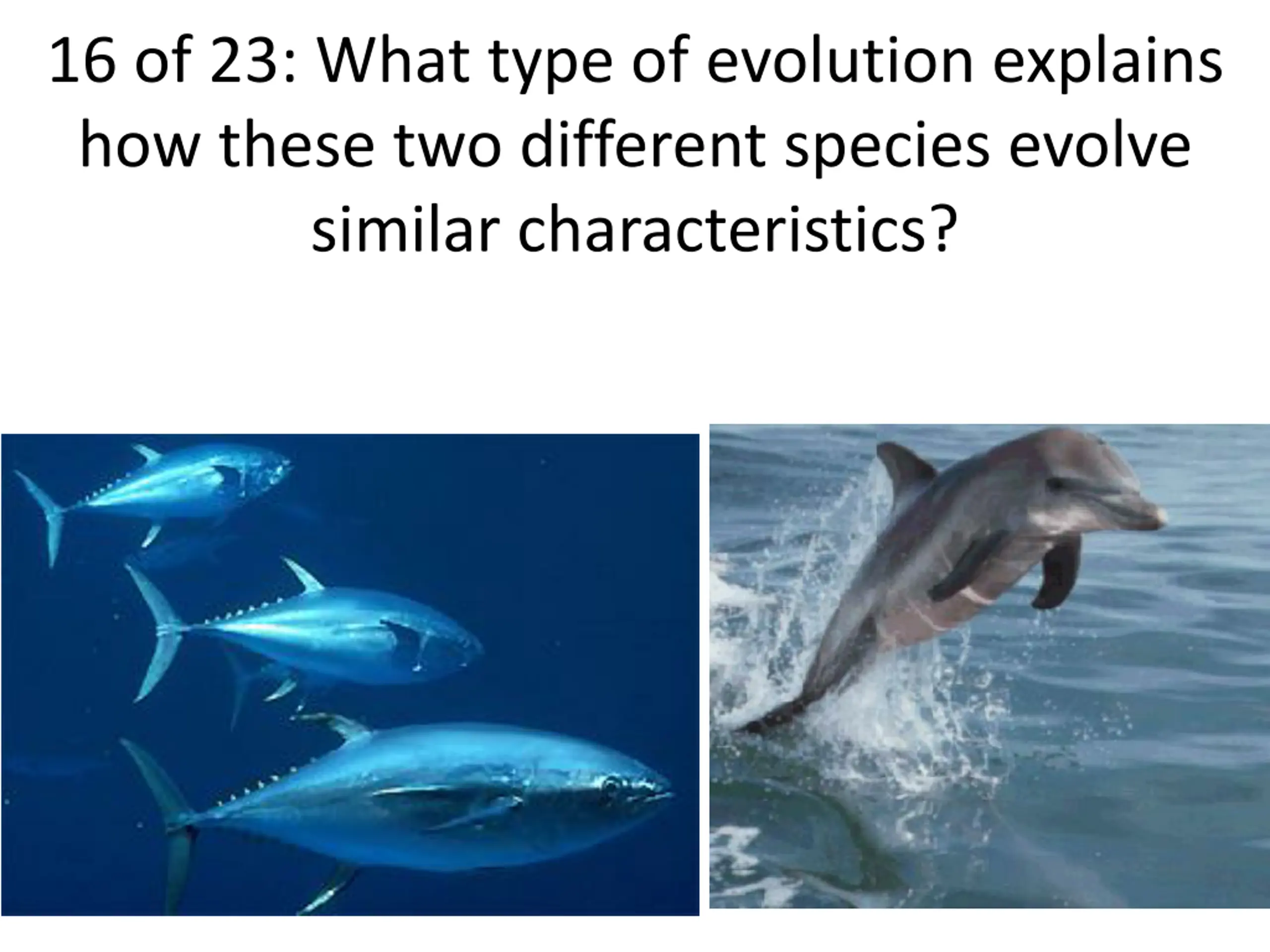 16 of 23: What type of evolution explains how these two different species evolve similar characteristics?
