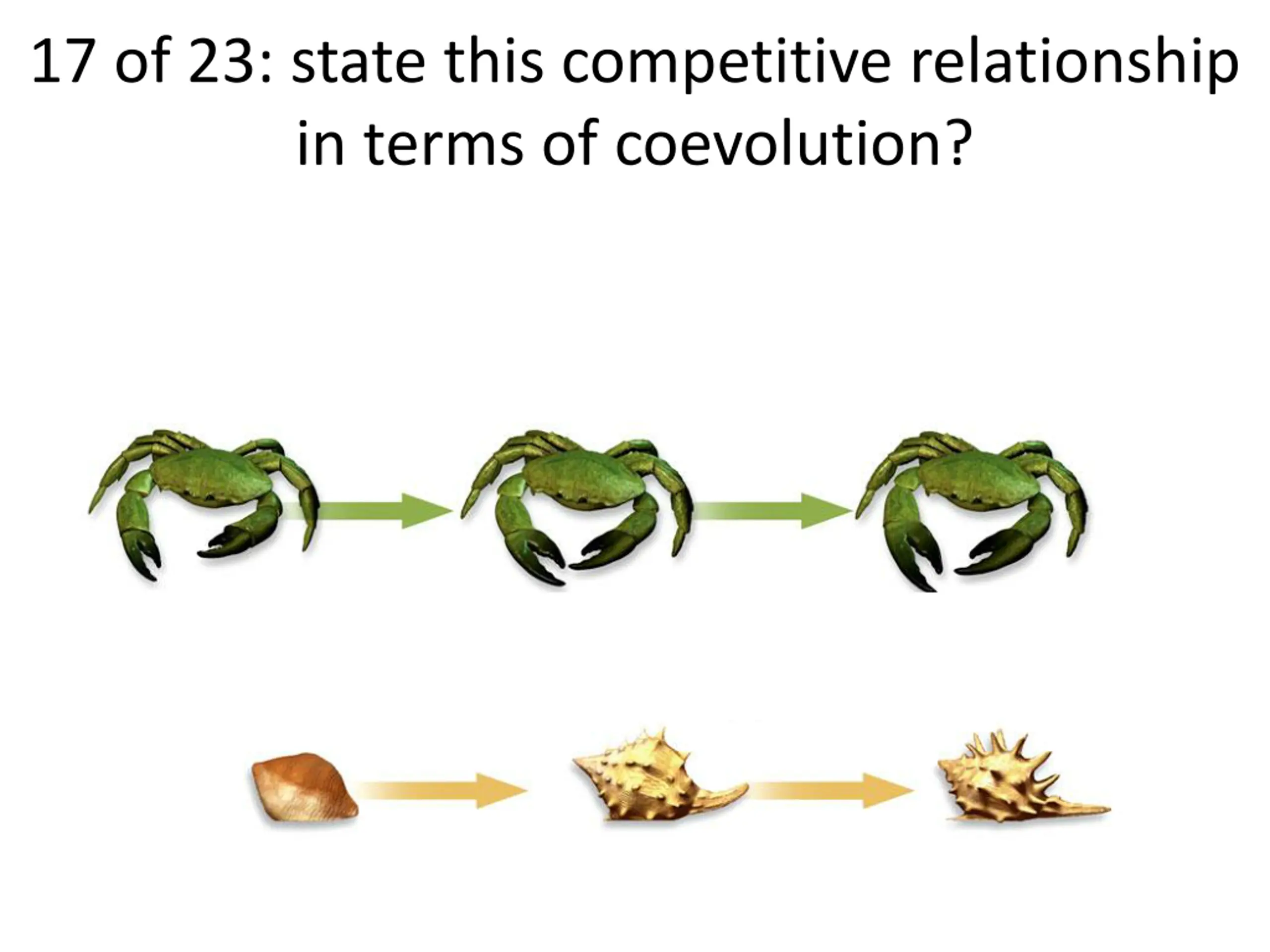17 of 22: Explain this competitive relationship in terms of coevolution? Evolutionary arms race