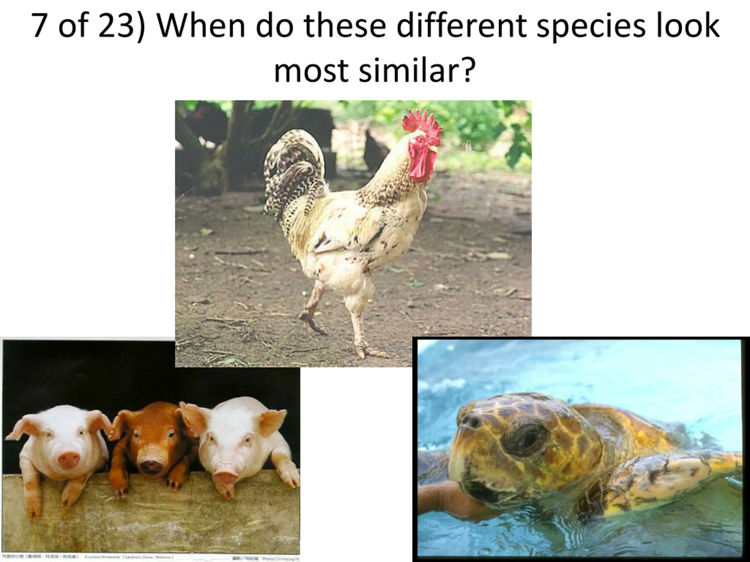 6 of 22: Evidence for evolution in Darwins time came from several sources. Name and explain one of the four evidences. Fossils: Bottom layers = older, upper layers = younger Geography: Mainland organisms look very similar to those on nearby islands. organisms evolved in response to their habitat. Embryology: Embryos of different species look very similar, but the adult species look very different. Anatomy: Comparing body parts of different species.