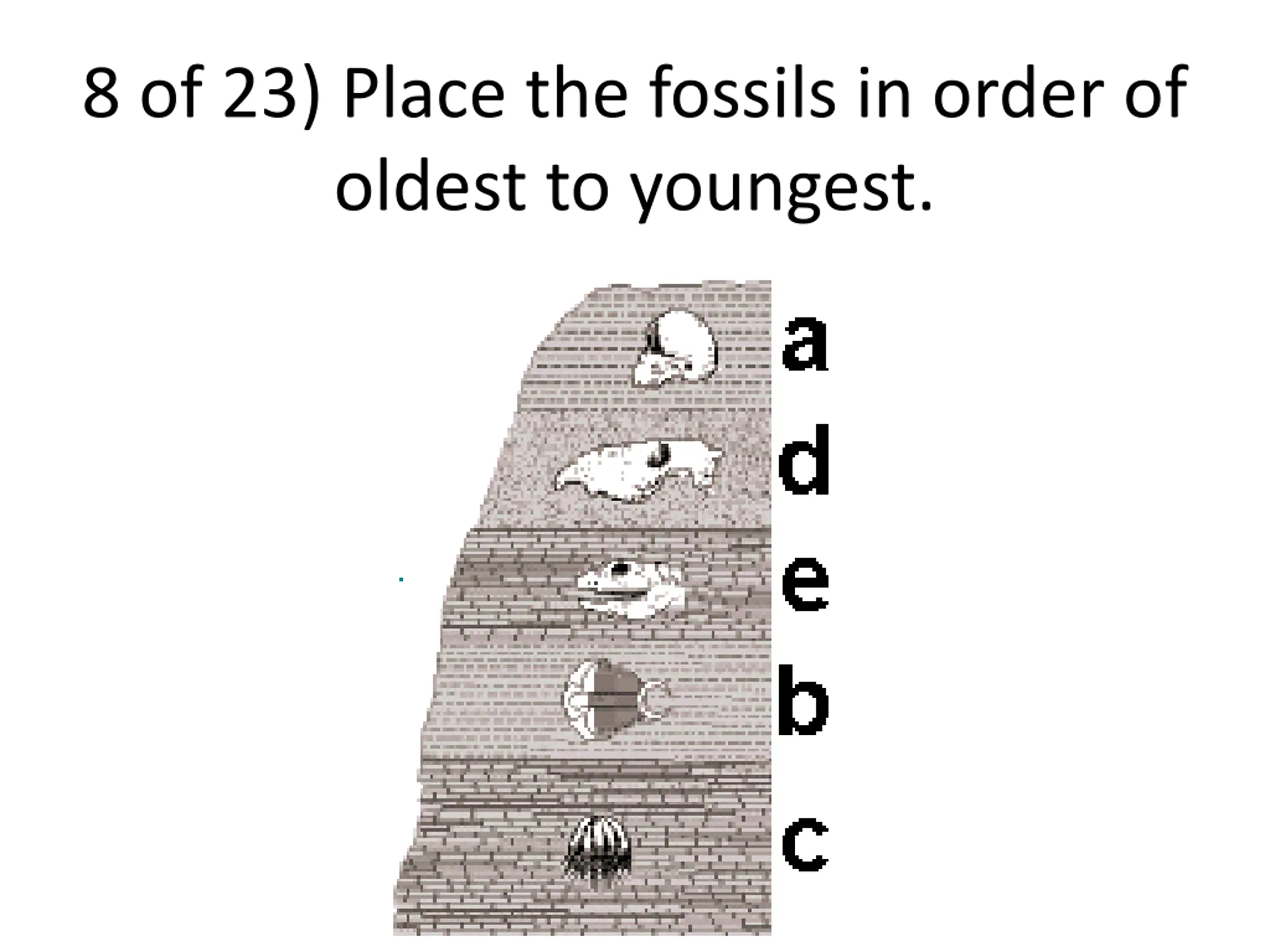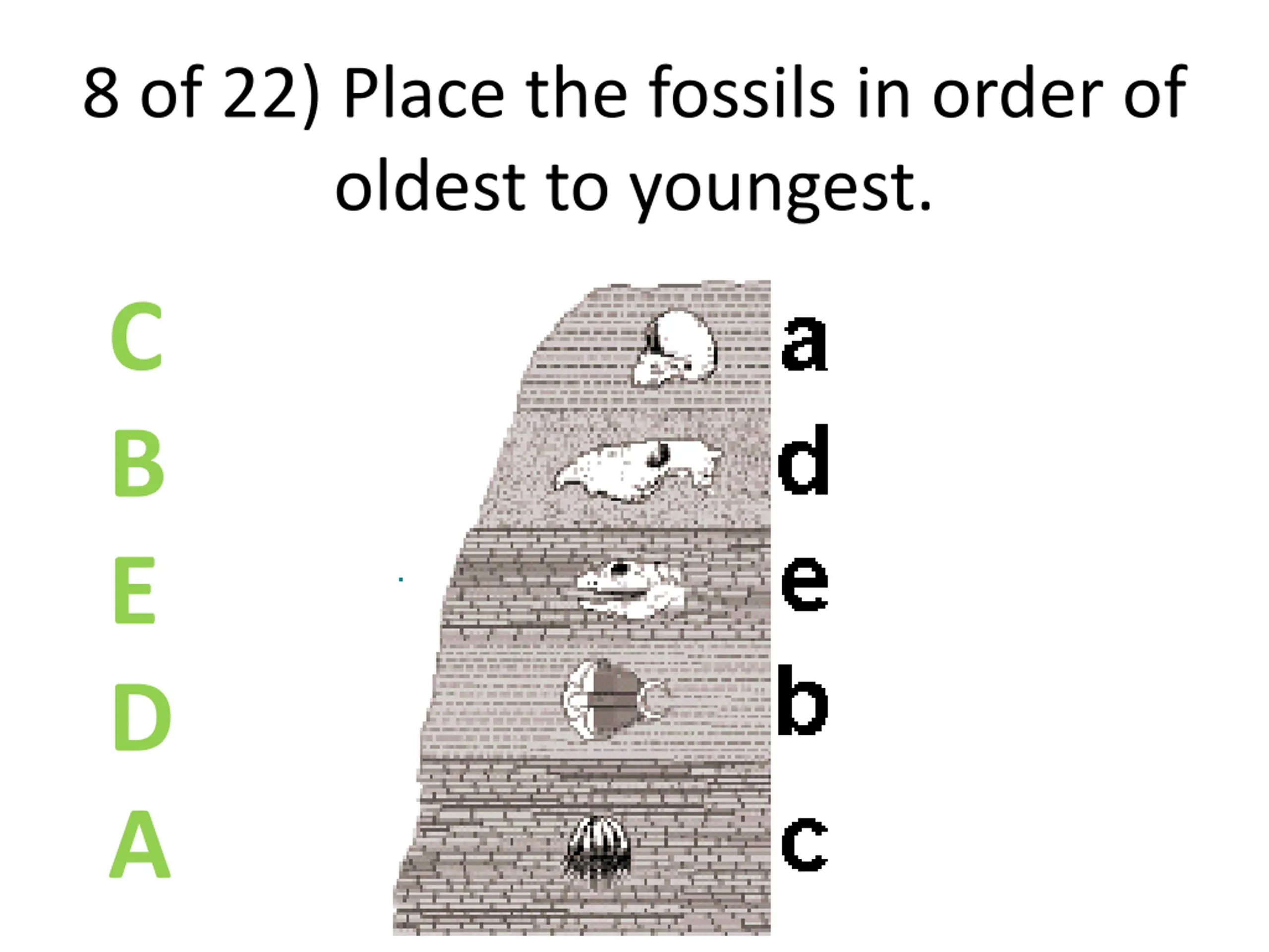 8 of 22) Place the fossils in order of oldest to youngest. C B E D A