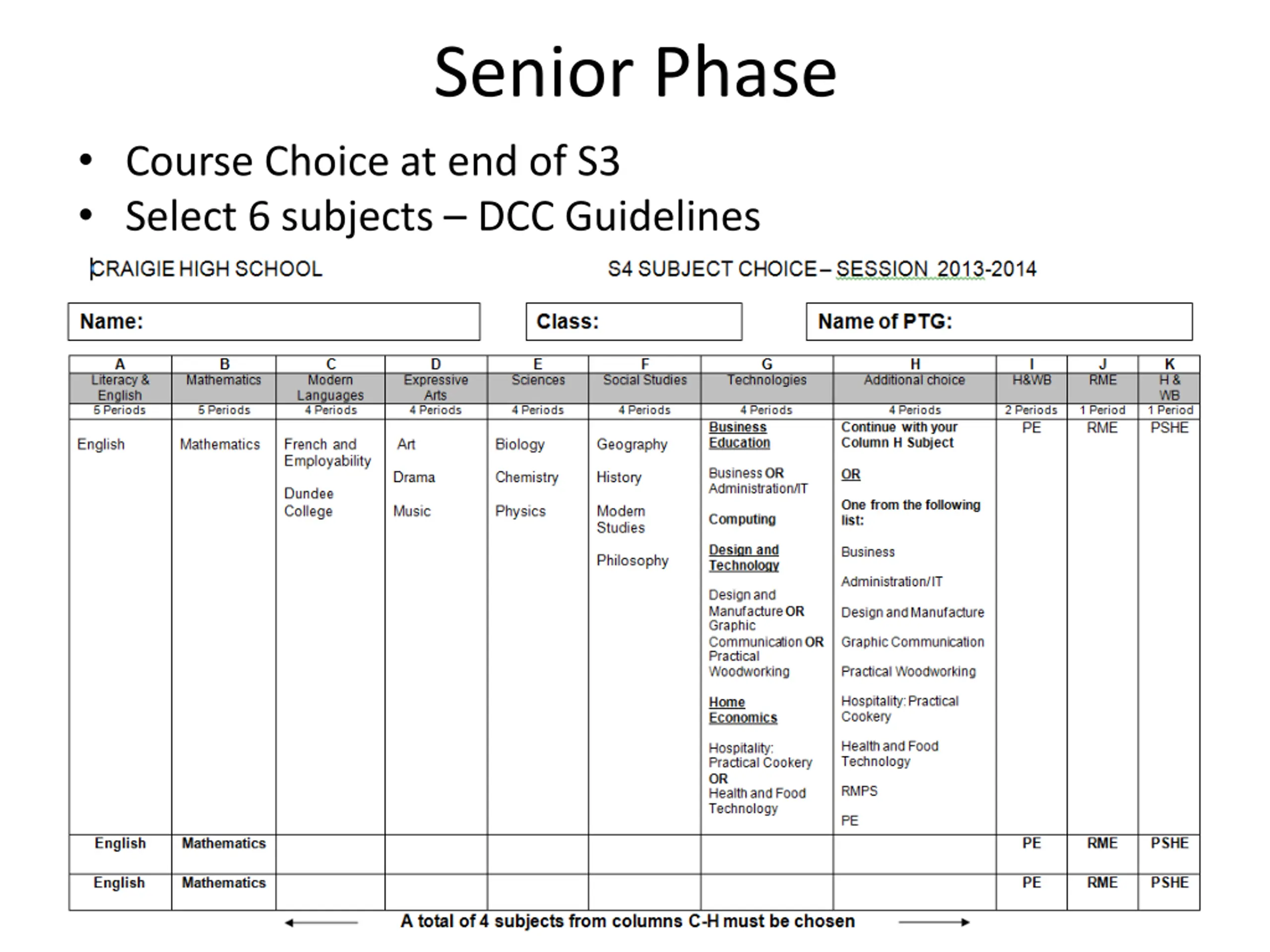 Senior Phase Course Choice at end of S3 Select 6 subjects DCC Guidelines
