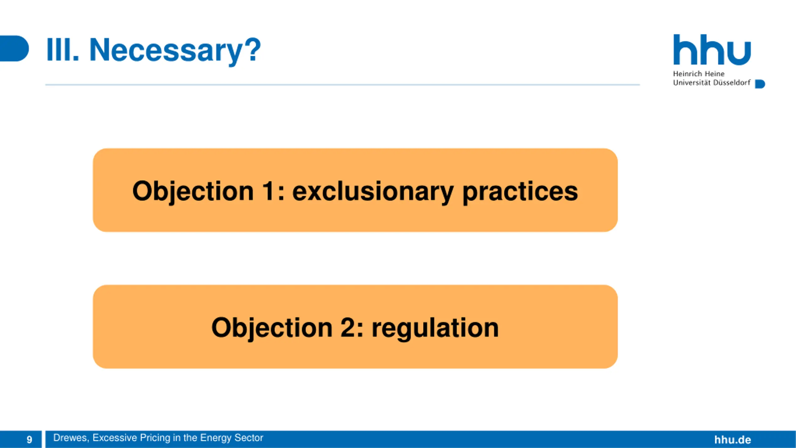 III. Necessary? Objection 1: exclusionary practices Objection 2: regulation Drewes, Excessive Pricing in the Energy Sector hhu.de 9