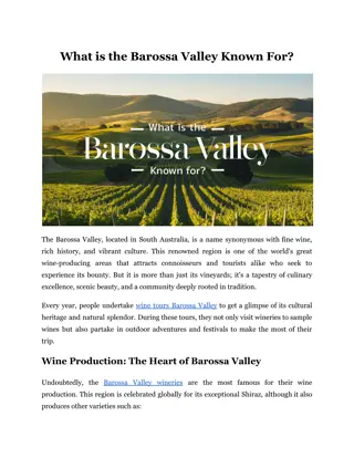 Exclusive Experiences: VIP and Private Winery Tours in Barossa Valley Think about sipping a glass of world-class Shiraz while surrounded by picturesque vineyards, rolling hills, and the warm sun of South Australia. The Barossa Valley is not just a destination; it s an experience that tantalizes the senses. With a beautiful history, this region is home to over 150 wineries, each with its own kind of take on winemaking. For those who need a more personalized experience, VIP and private winery tours provide an intimate way to explore the Barossa Valley wineries. Why Choose a Private Winery Tour in Barossa Valley?