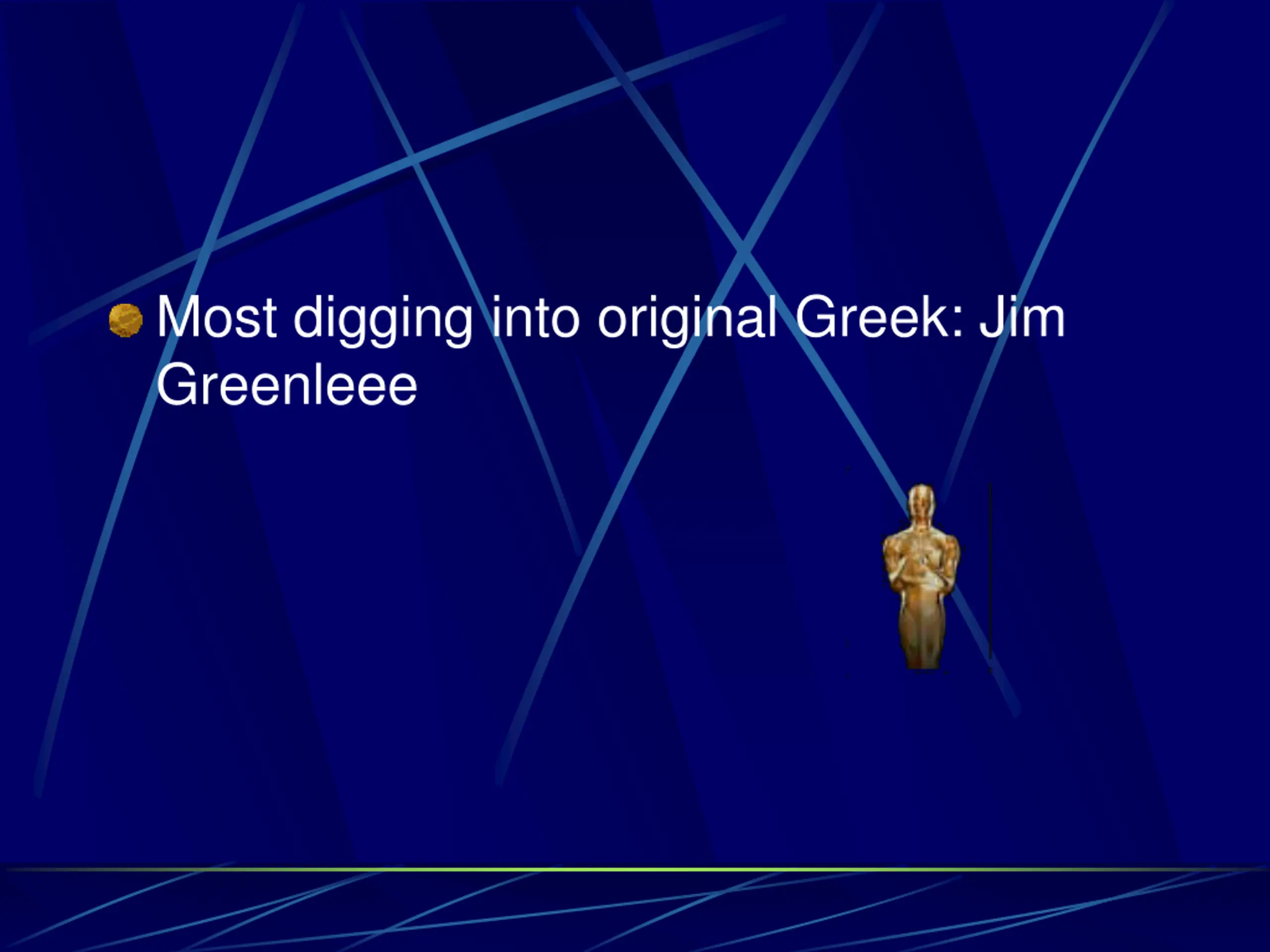 Most digging into original Greek: Jim Greenleee