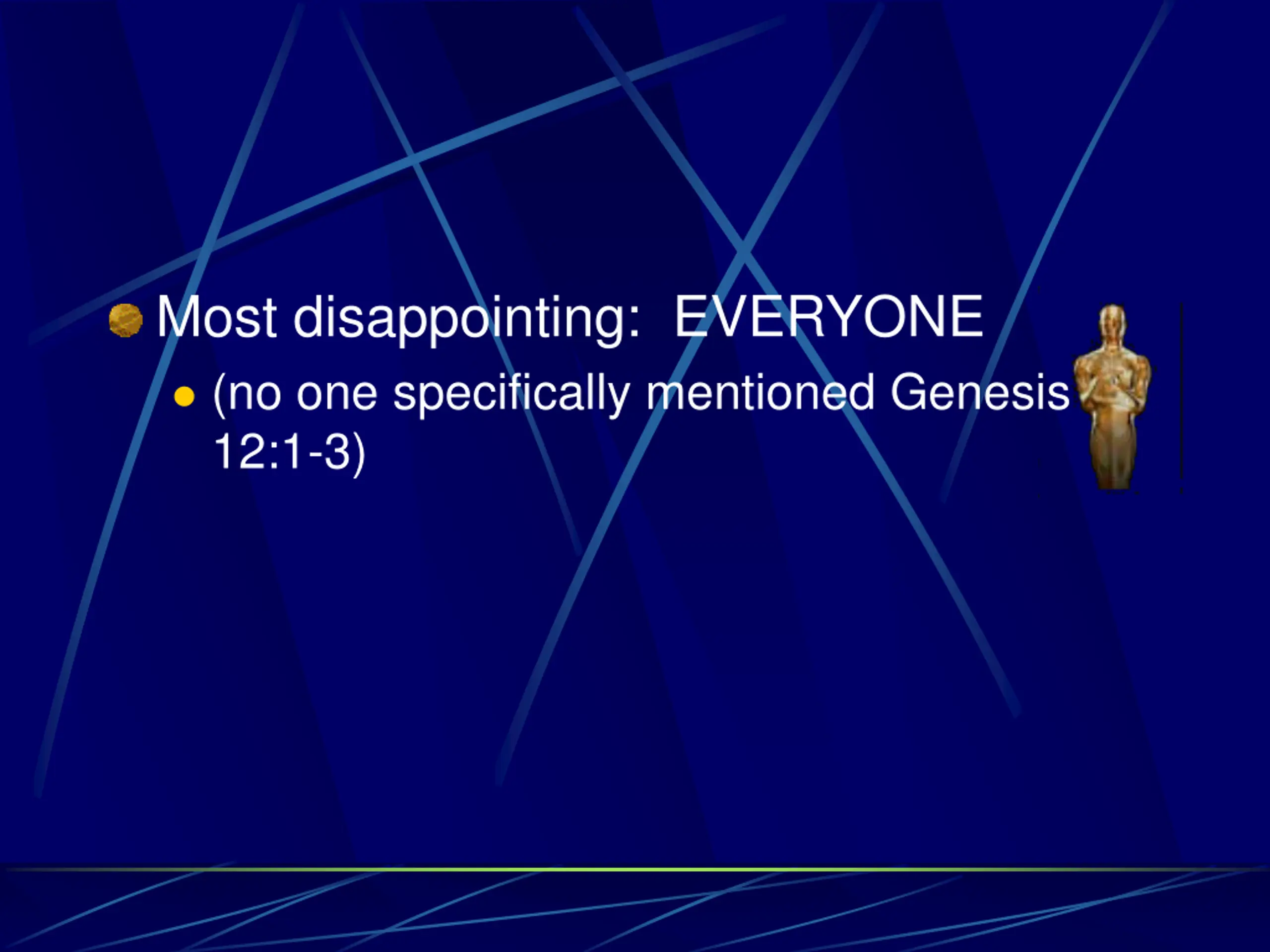 Most disappointing: EVERYONE (no one specifically mentioned Genesis 12:1-3)