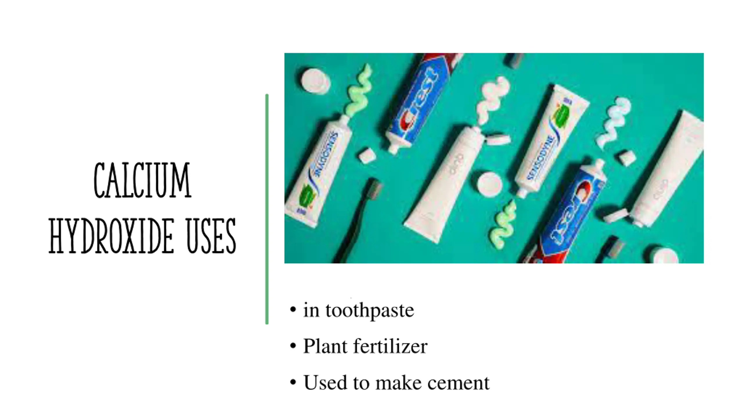 Calcium hydroxide uses in toothpaste Plant fertilizer Used to make cement