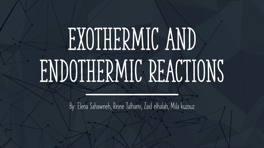 Exothermic and Endothermic reactions By: Elena Sahawneh, Reine Talhami, Zaid elhalah, Mila kuzouz