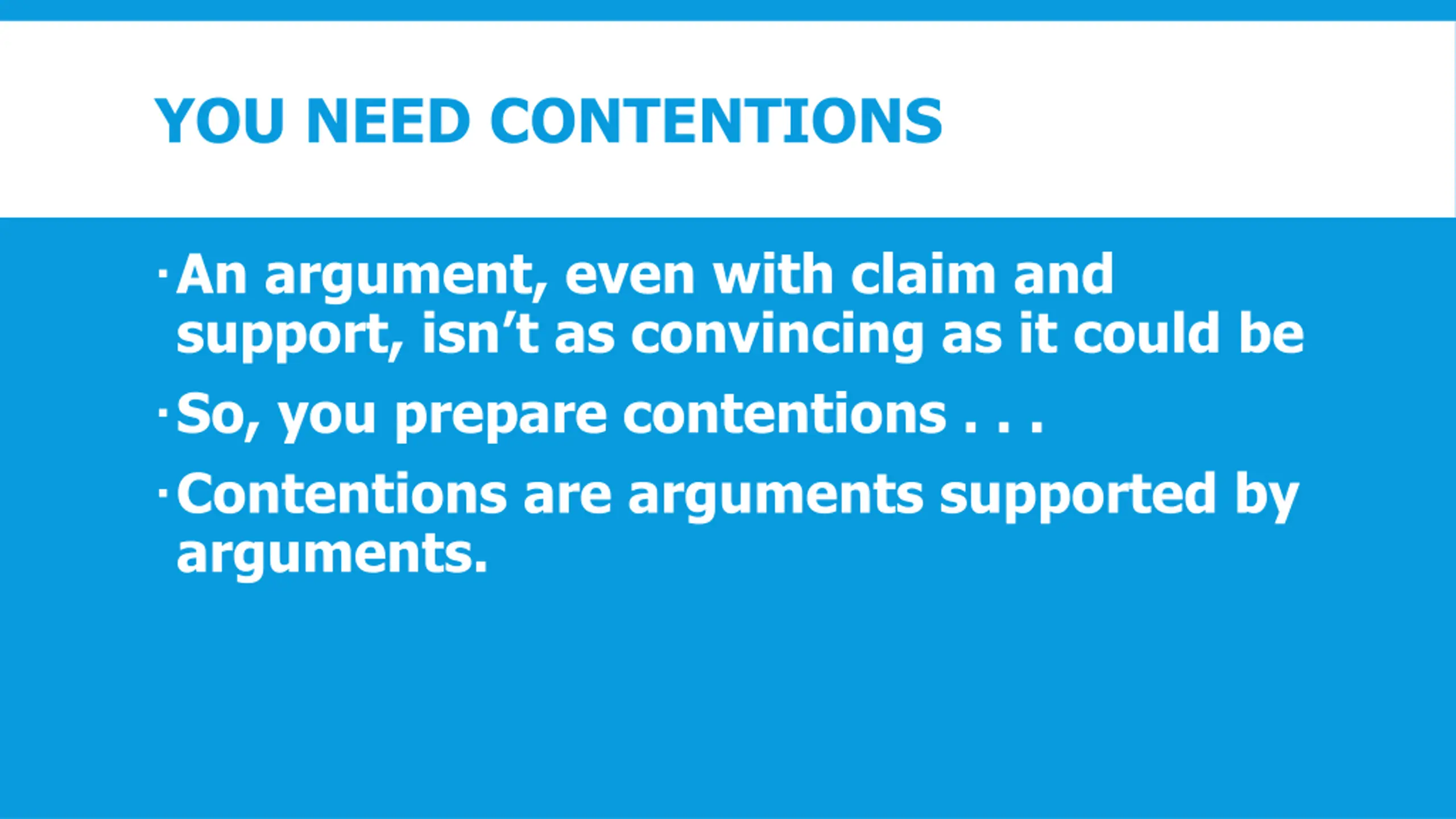 YOU NEED CONTENTIONS An argument, even with claim and support, isn t as convincing as it could be So, you prepare contentions . . . Contentions are arguments supported by arguments.