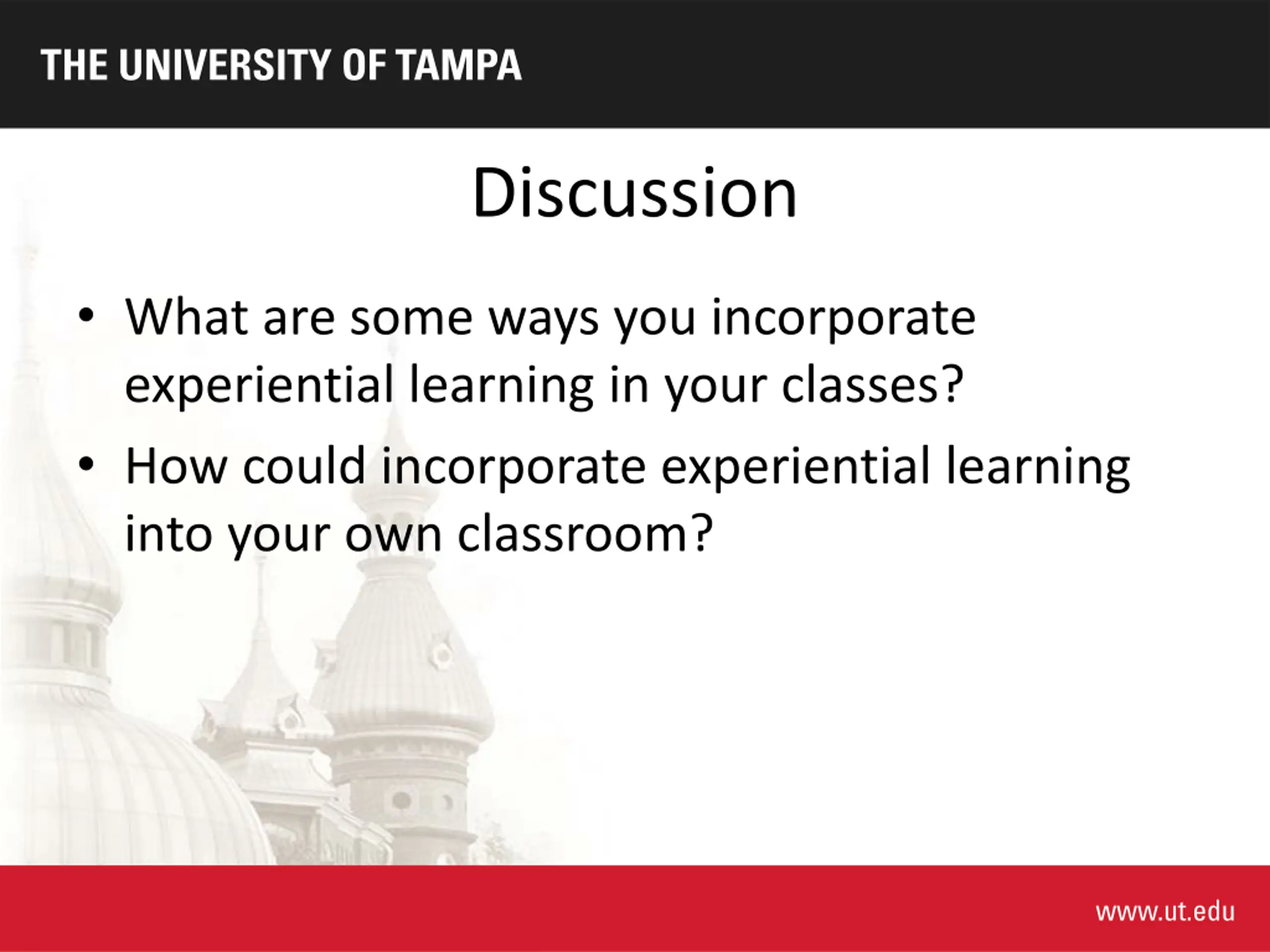 Discussion What are some ways you incorporate experiential learning in your classes? How could incorporate experiential learning into your own classroom?
