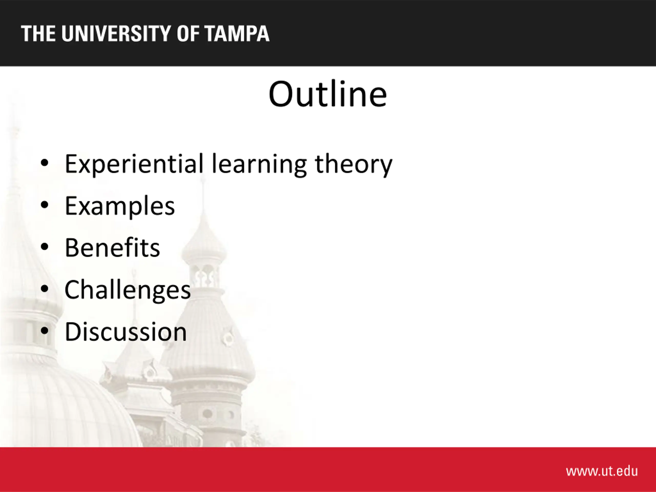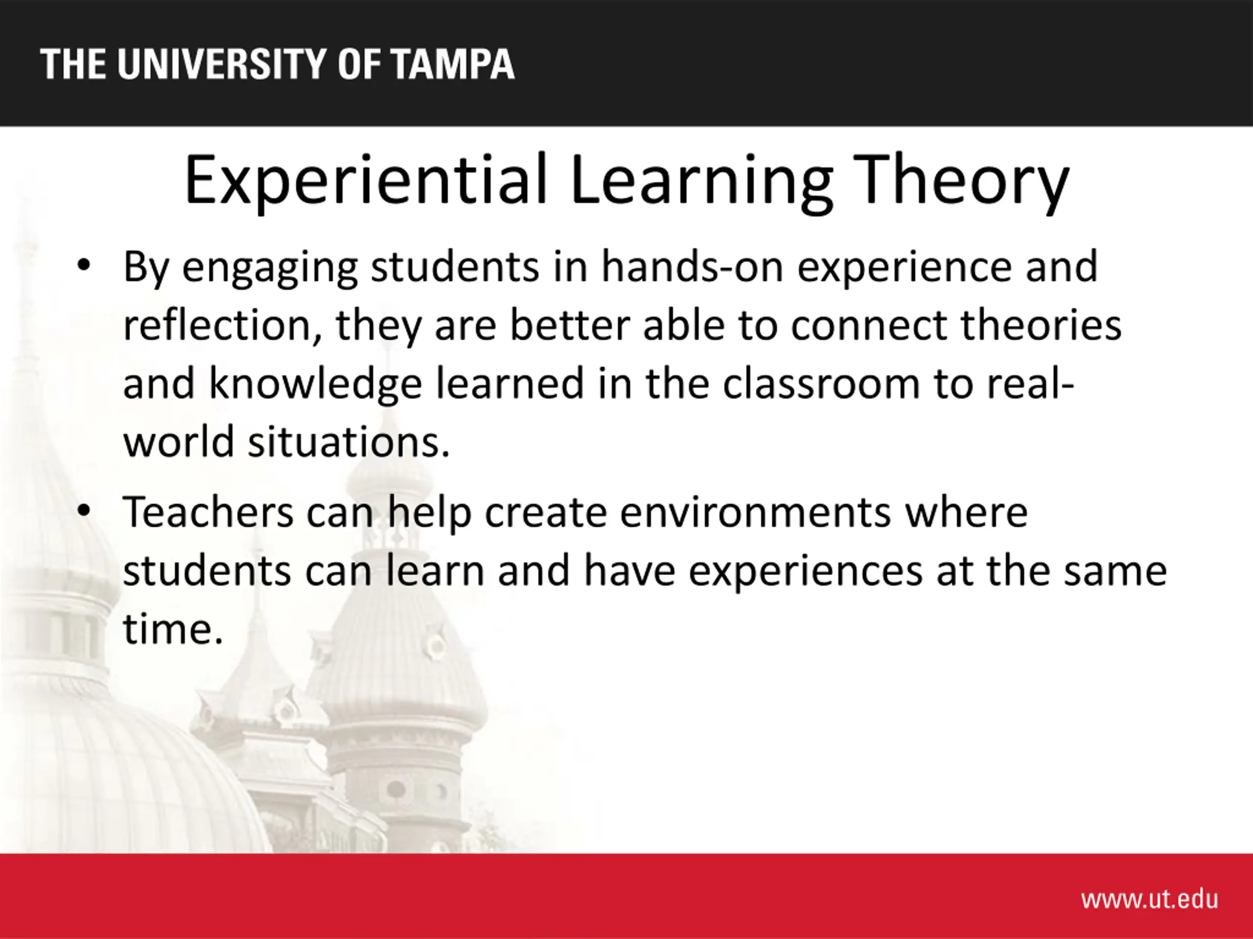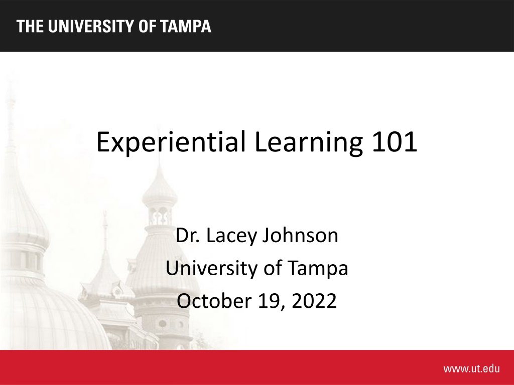 Experiential Learning 101 Dr. Lacey Johnson University of Tampa October 19, 2022