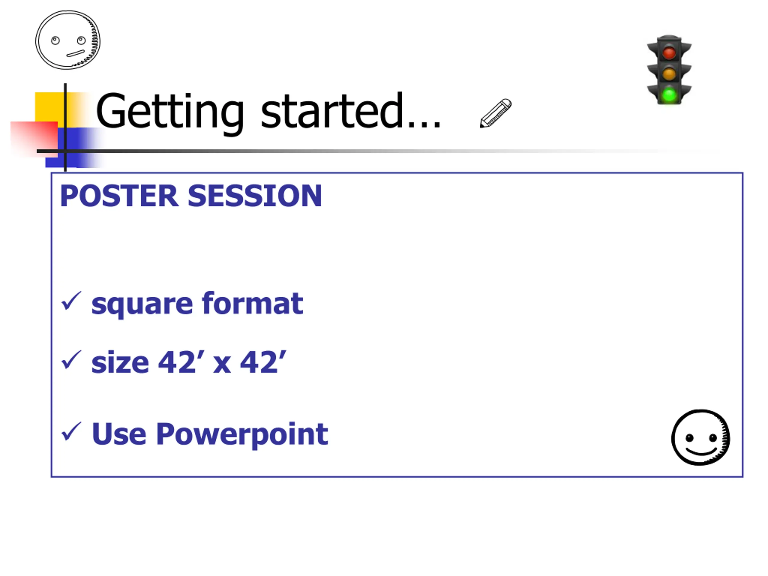Getting started POSTER SESSION square format size 42 x 42 Use Powerpoint