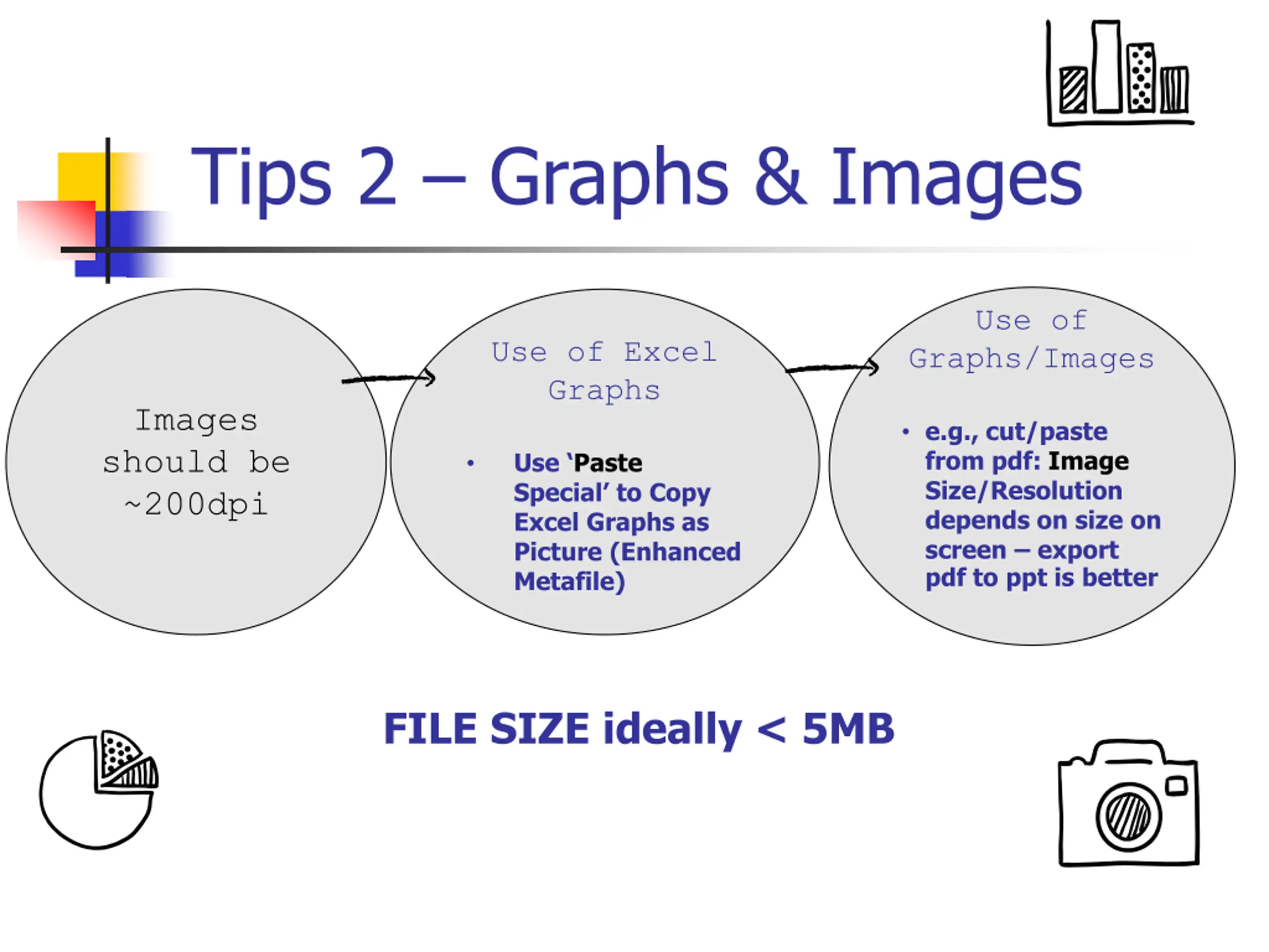 Tips 2 Graphs & Images Use of Use of Excel Graphs Graphs/Images Images should be ~200dpi e.g., cut/paste from pdf: Image Size/Resolution depends on size on screen export pdf to ppt is better Use Paste Special to Copy Excel Graphs as Picture (Enhanced Metafile) FILE SIZE ideally < 5MB