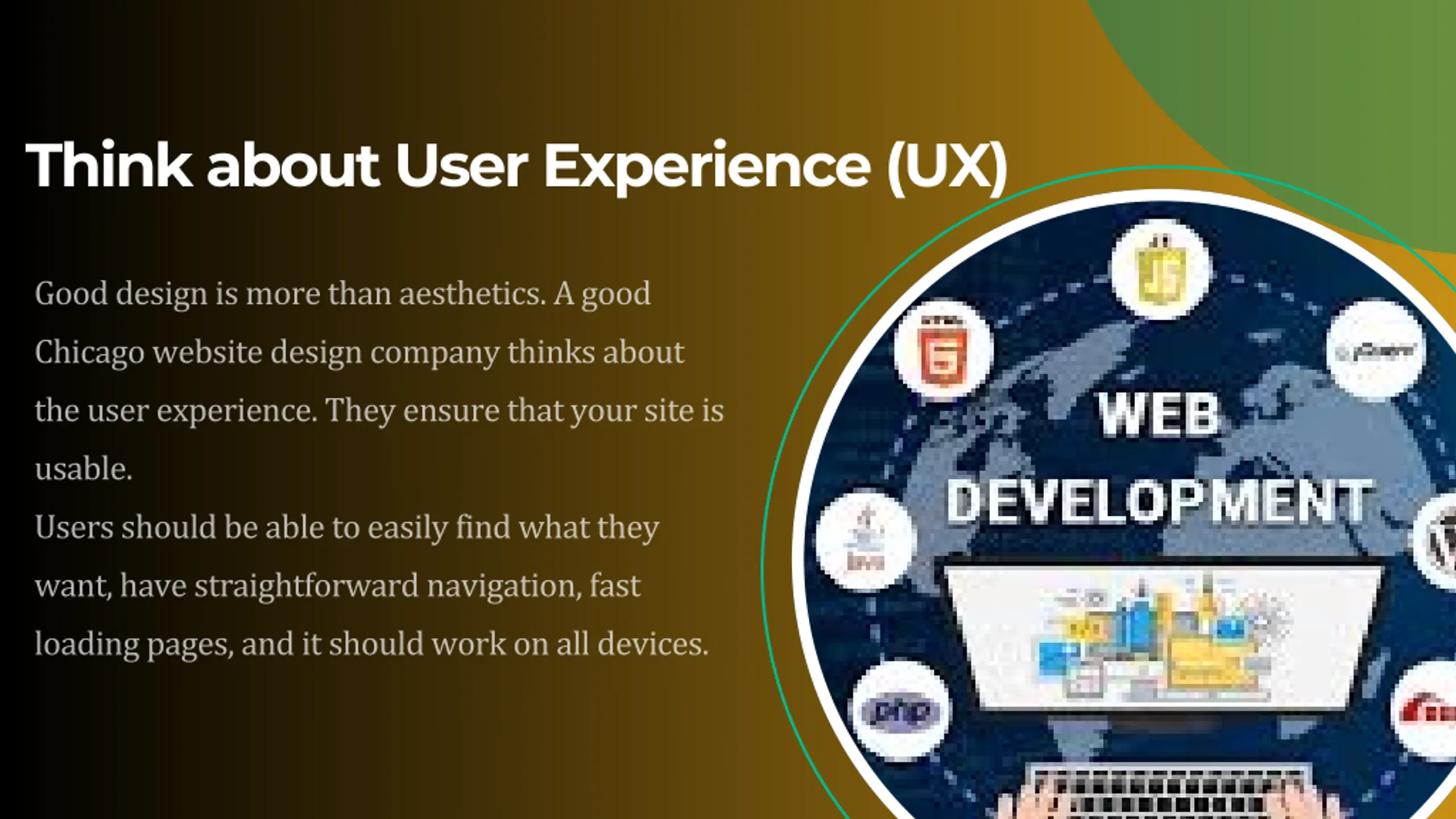 Think about User Experience (UX) Good design is more than aesthetics. A good Chicago website design company thinks about the user experience. They ensure that your site is usable. Users should be able to easily find what they want, have straightforward navigation, fast loading pages, and it should work on all devices.