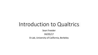 Qualtrics Resources at the UofM * Qualtrics helpline: 800-340-9194 support@qualtrics.com * Stay Connected Handout * Surveys.umn.edu * Join the Qualtrics User Group * Fill out a Qualtrics Consulting Request Form