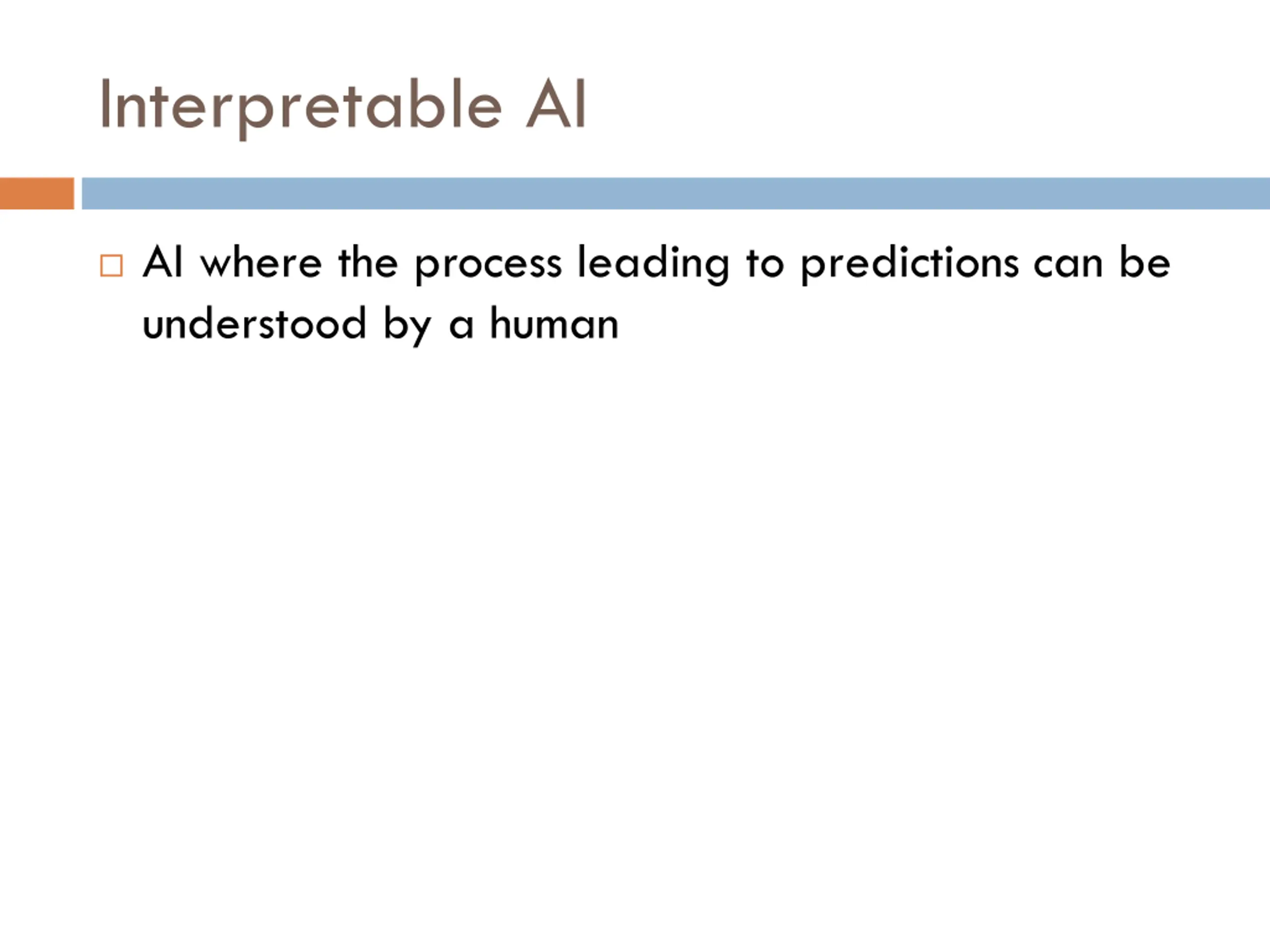 Interpretable AI AI where the process leading to predictions can be understood by a human