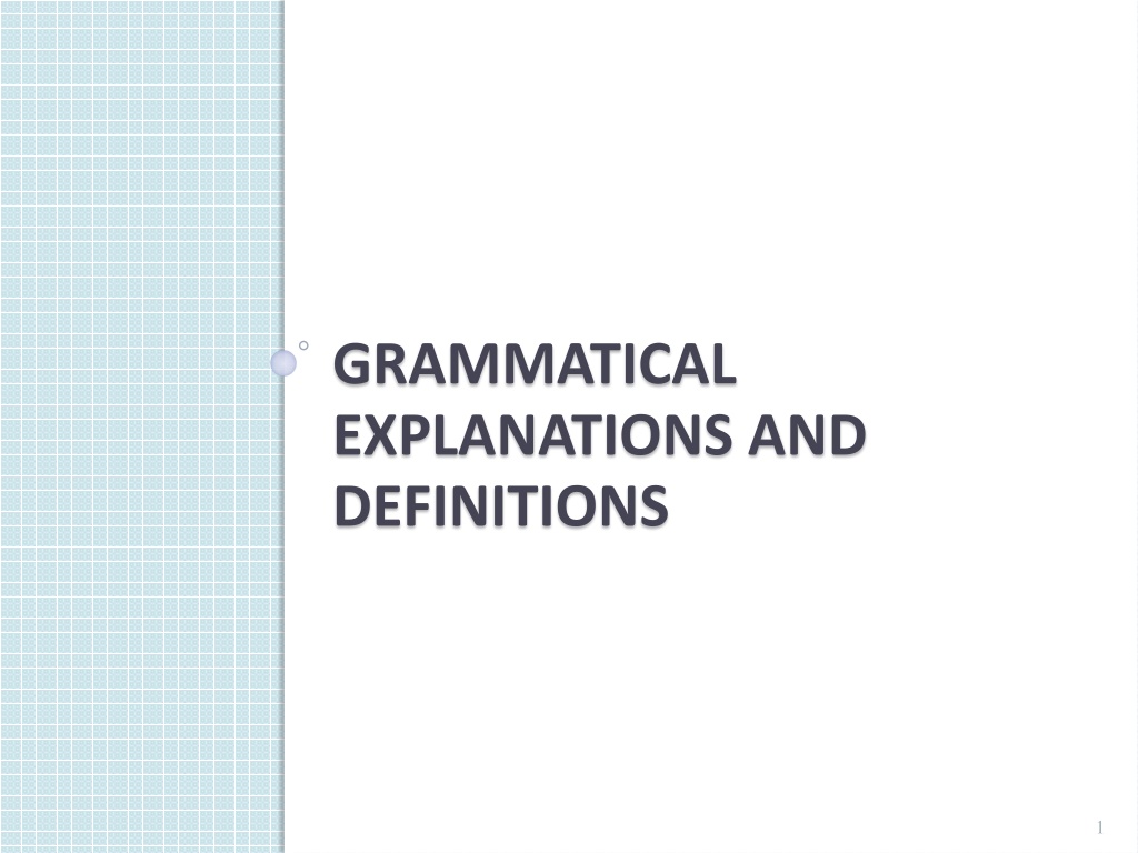 GRAMMATICAL EXPLANATIONS AND DEFINITIONS 1