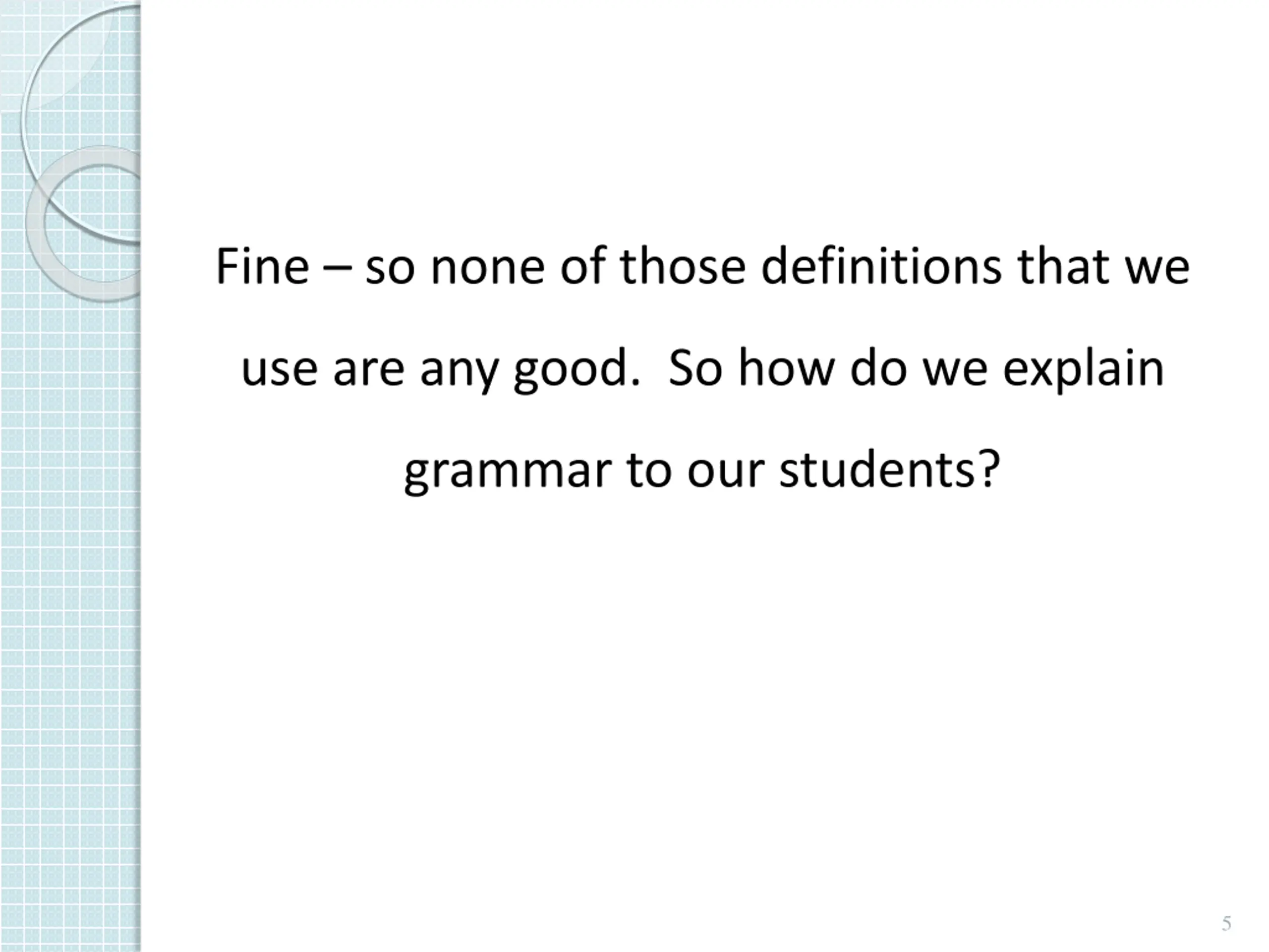 Fine so none of those definitions that we use are any good. So how do we explain grammar to our students? 5
