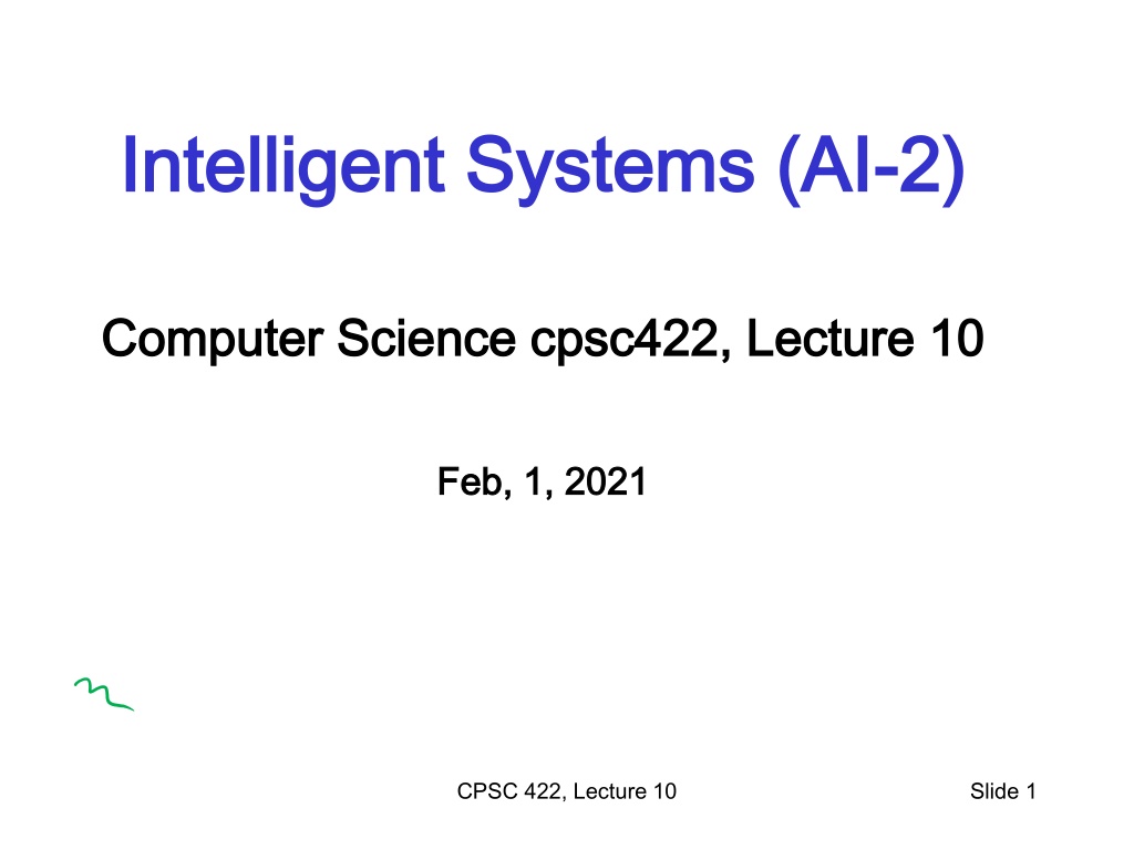 Intelligent Systems (AI Intelligent Systems (AI- -2) 2) Computer Science cpsc422, Lecture 10 Computer Science cpsc422, Lecture 10 Feb, 1, 2021 Feb, 1, 2021 CPSC 422, Lecture 10 Slide 1