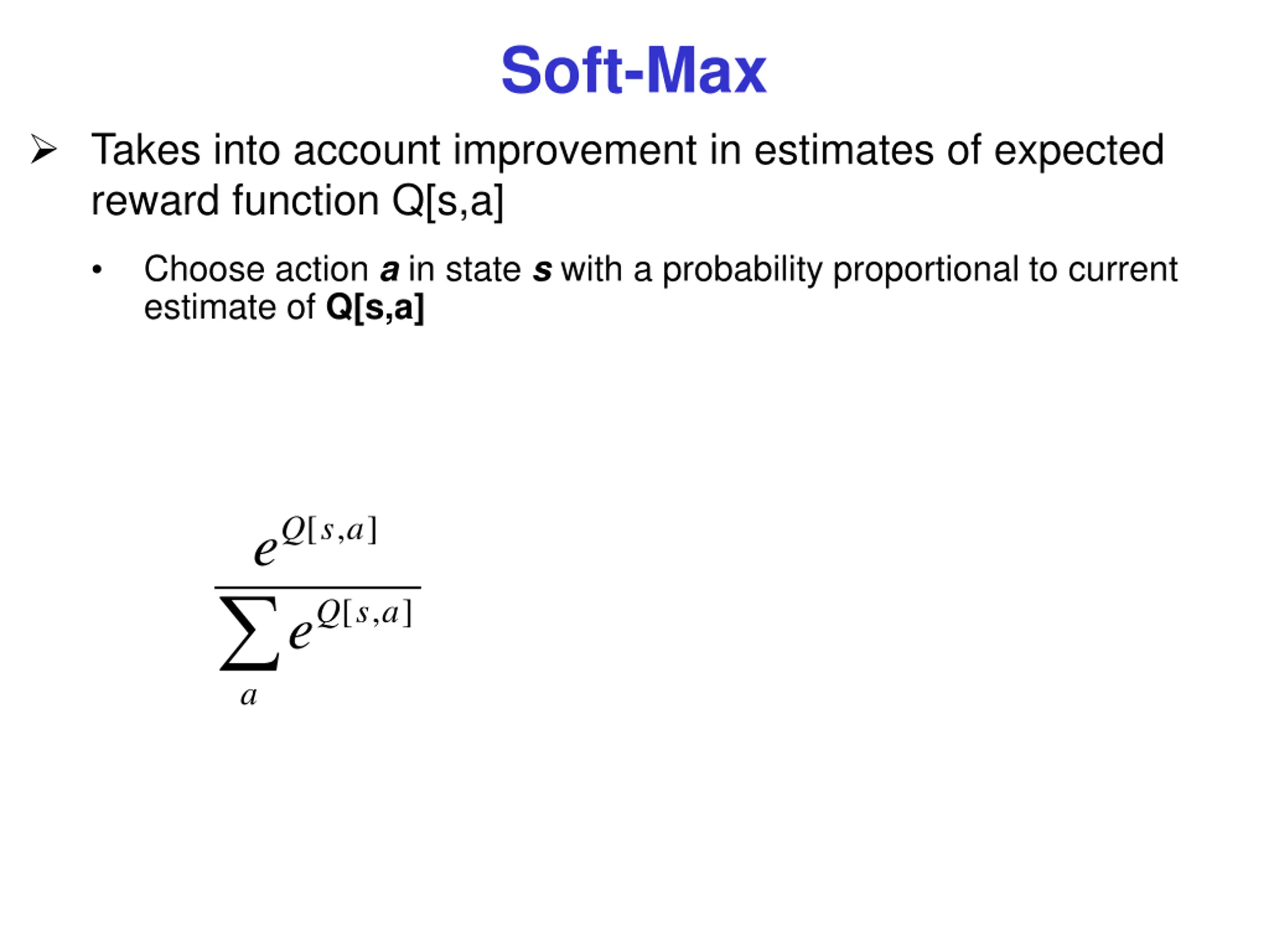 Soft-Max Takes into account improvement in estimates of expected reward function Q[s,a] Choose action ain state s with a probability proportional to current estimate of Q[s,a] [ , ] Q s a e a [ , ] Q s a e CPSC 422, Lecture 8 9