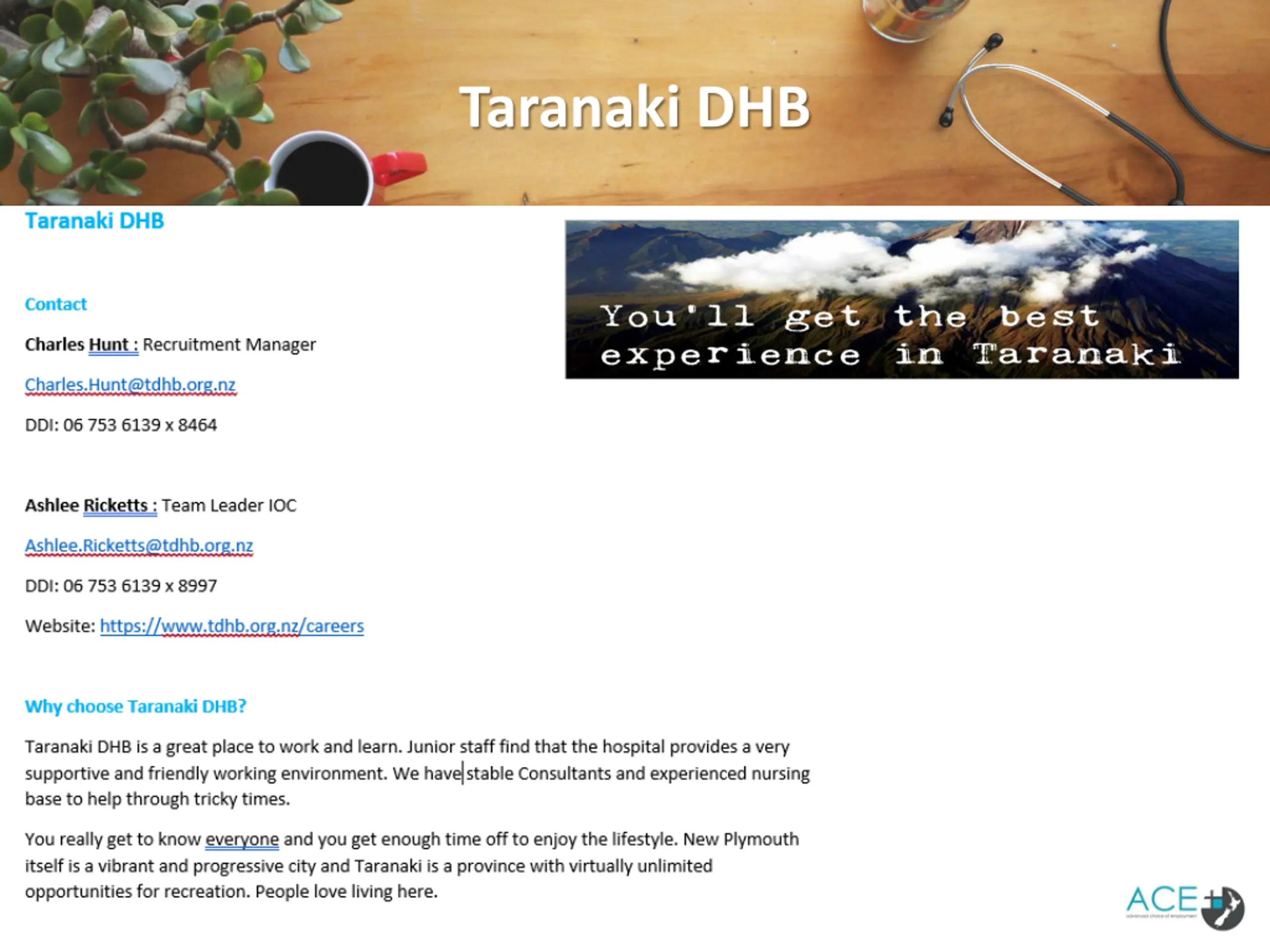 ACE RMO Intake 2023 Training Year DHB Digital Roadshow Taranaki DHB