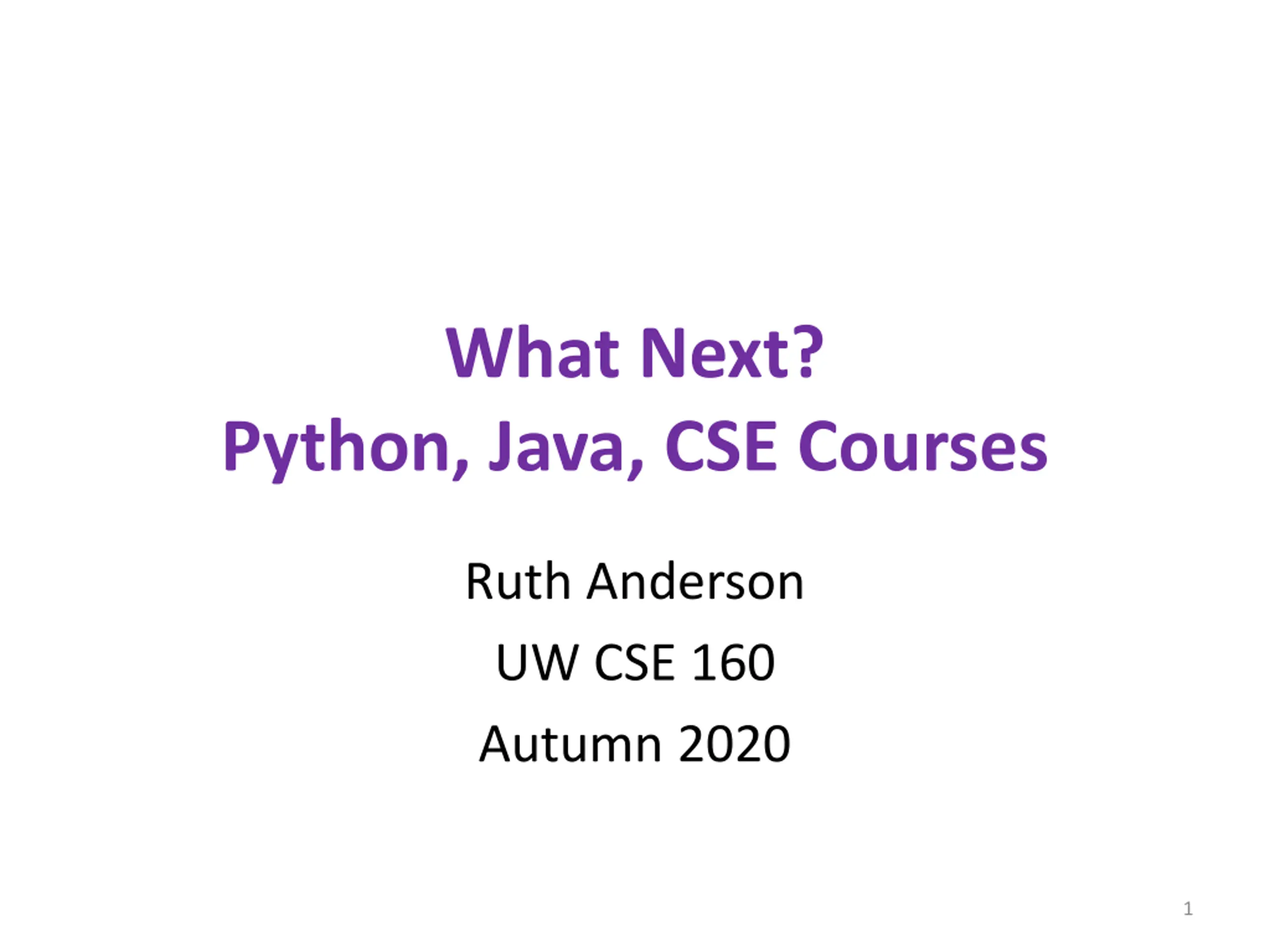 What Next? Python, Java, CSE Courses Ruth Anderson UW CSE 160 Autumn 2020 1