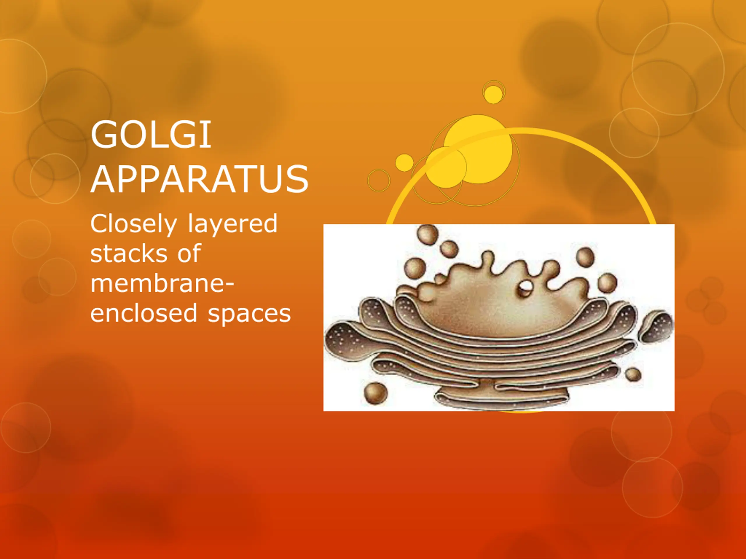 GOLGI APPARATUS Closely layered stacks of membrane- enclosed spaces