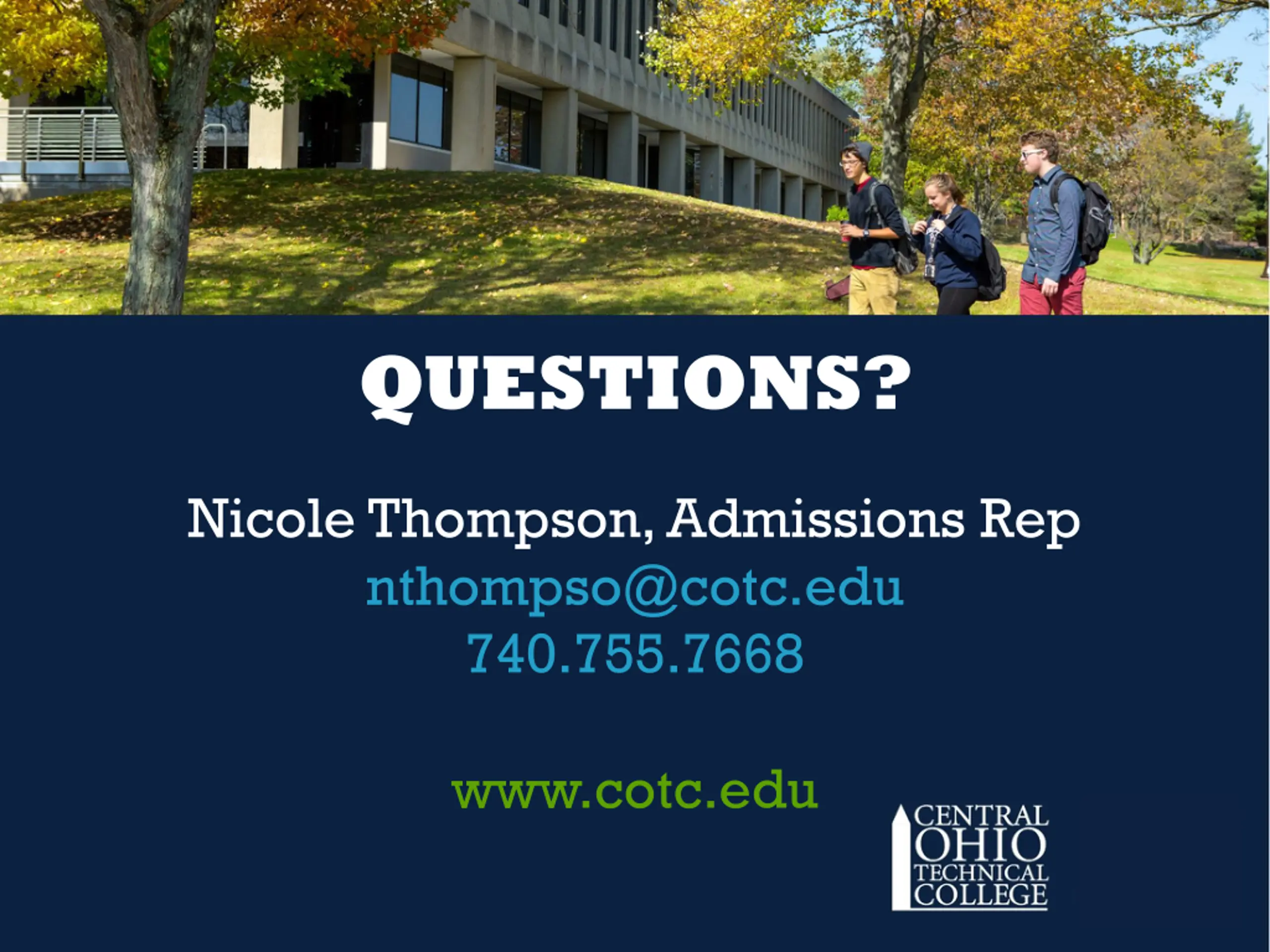 QUESTIONS? Nicole Thompson, Admissions Rep nthompso@cotc.edu 740.755.7668 www.cotc.edu