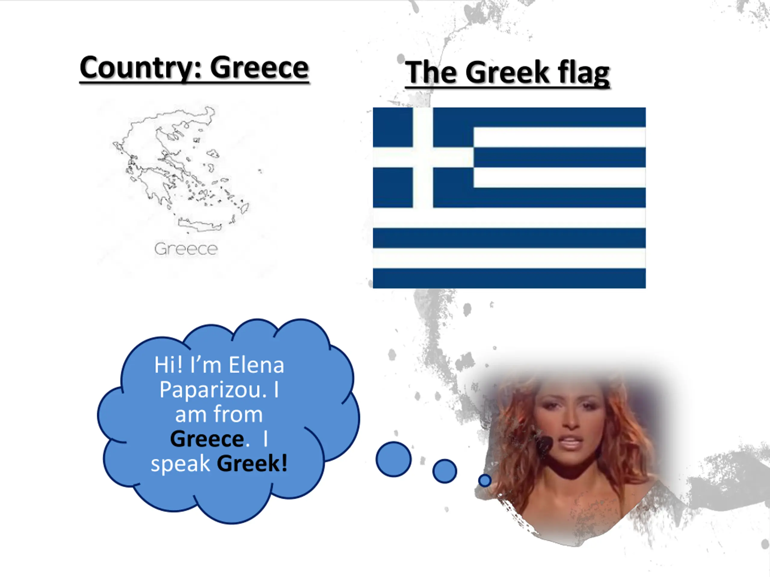 Country: Greece The Greek flag Hi! I m Elena Paparizou. I am from Greece. I speak Greek!