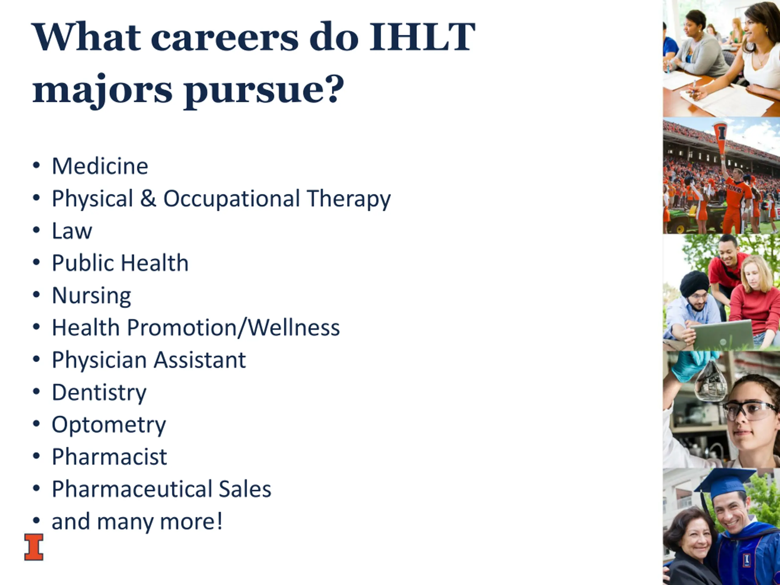 What careers do IHLT majors pursue? Medicine Physical & Occupational Therapy Law Public Health Nursing Health Promotion/Wellness Physician Assistant Dentistry Optometry Pharmacist Pharmaceutical Sales and many more!