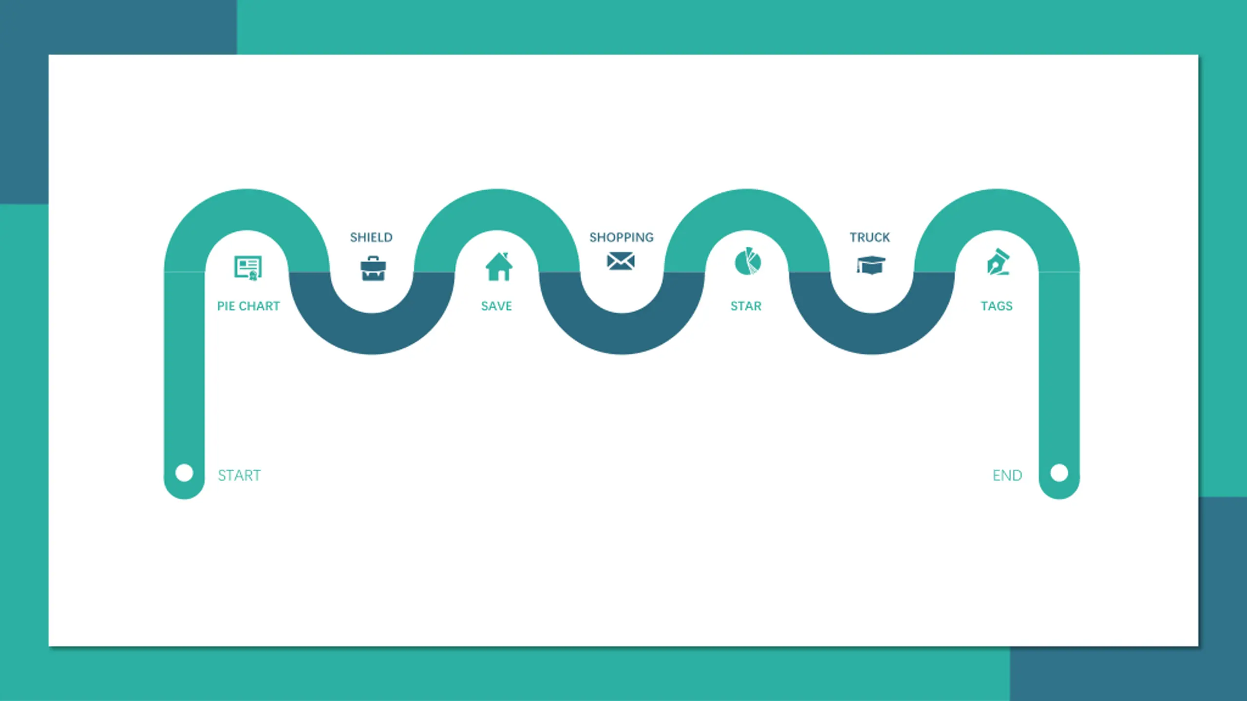 SHIELD SHOPPING TRUCK PIE CHART SAVE STAR TAGS START END