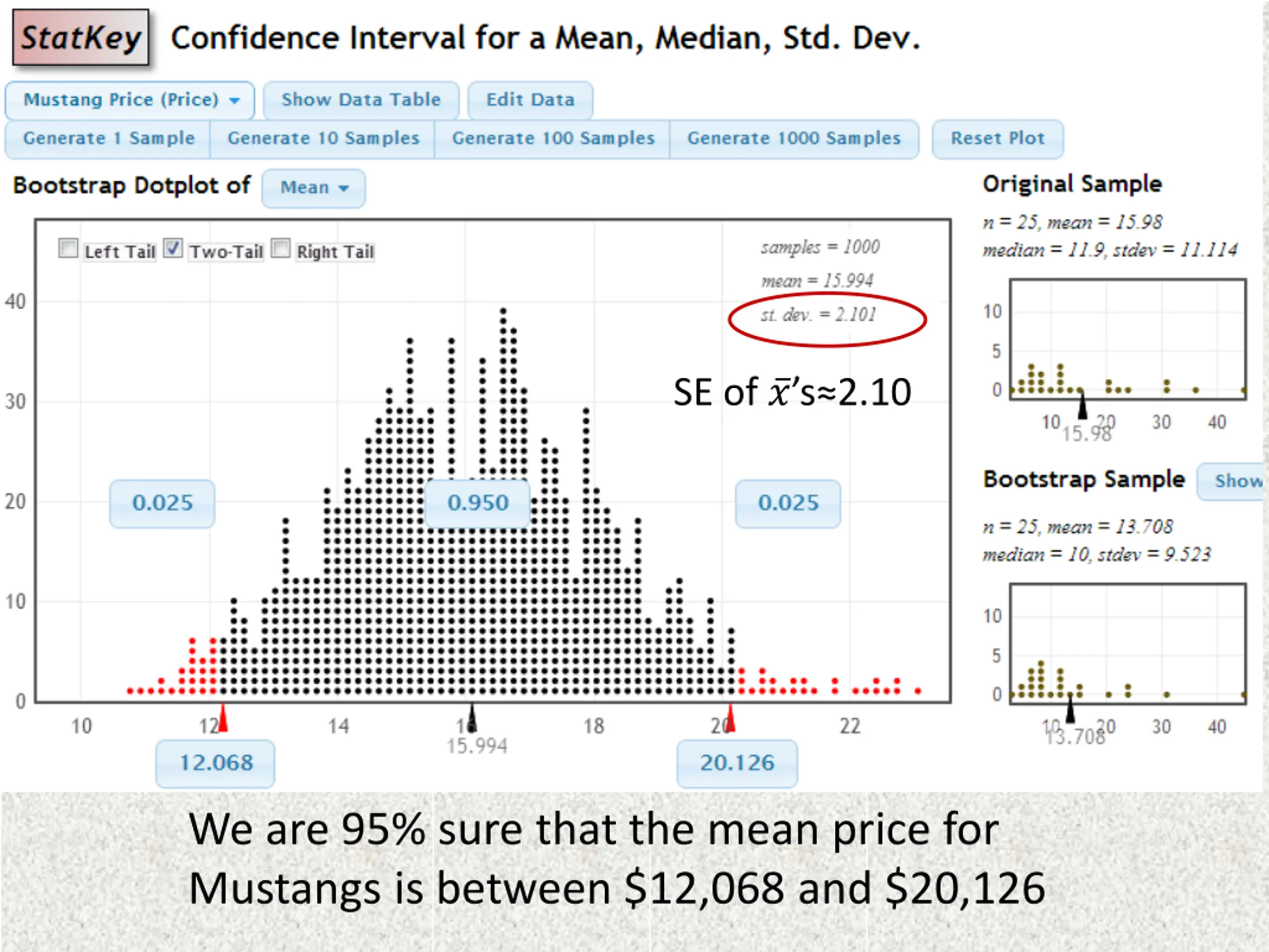 SE of ?s2.10 We are 95% sure that the mean price for Mustangs is between $12,068 and $20,126