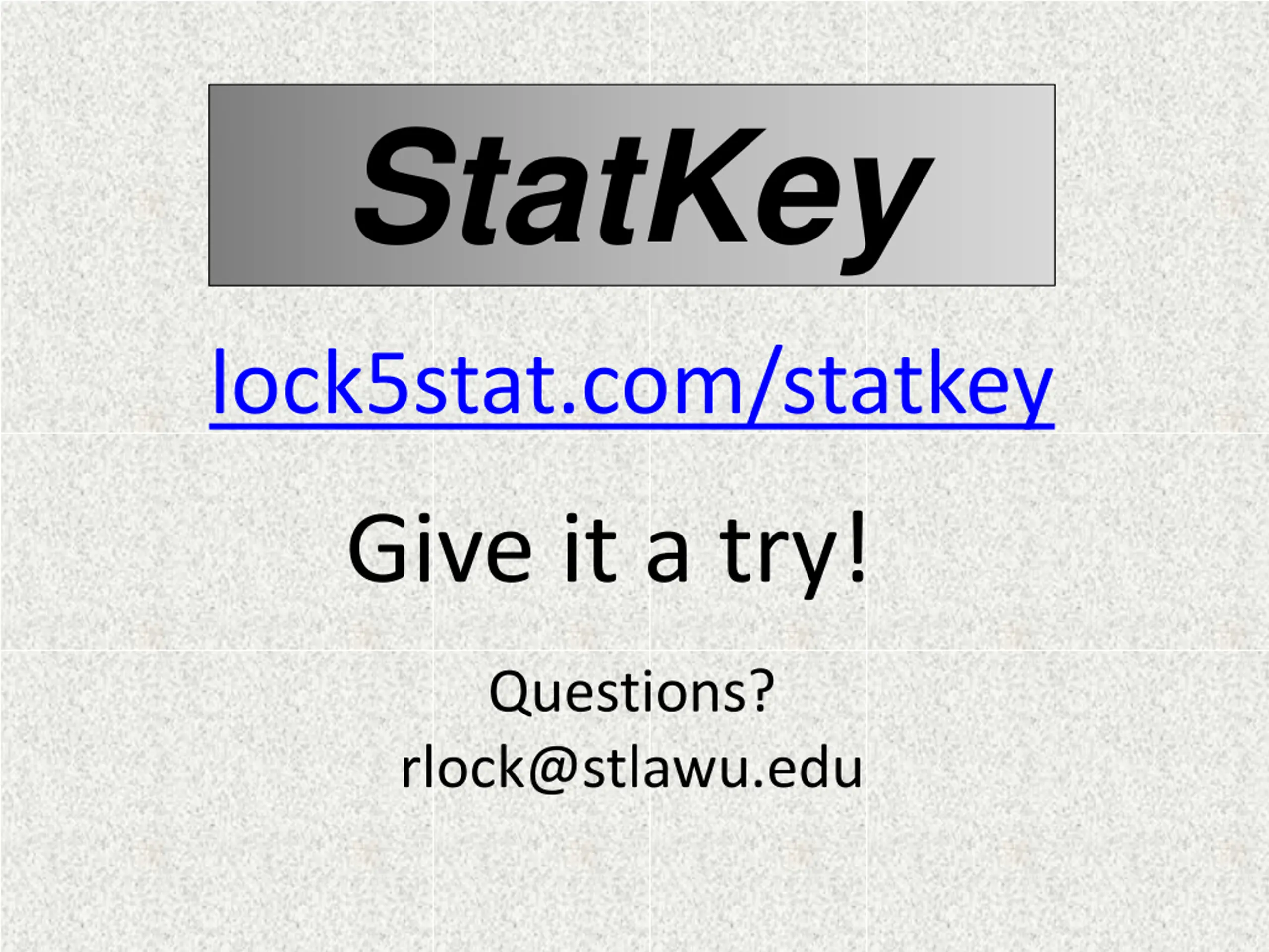StatKey lock5stat.com/statkey Give it a try! Questions? rlock@stlawu.edu