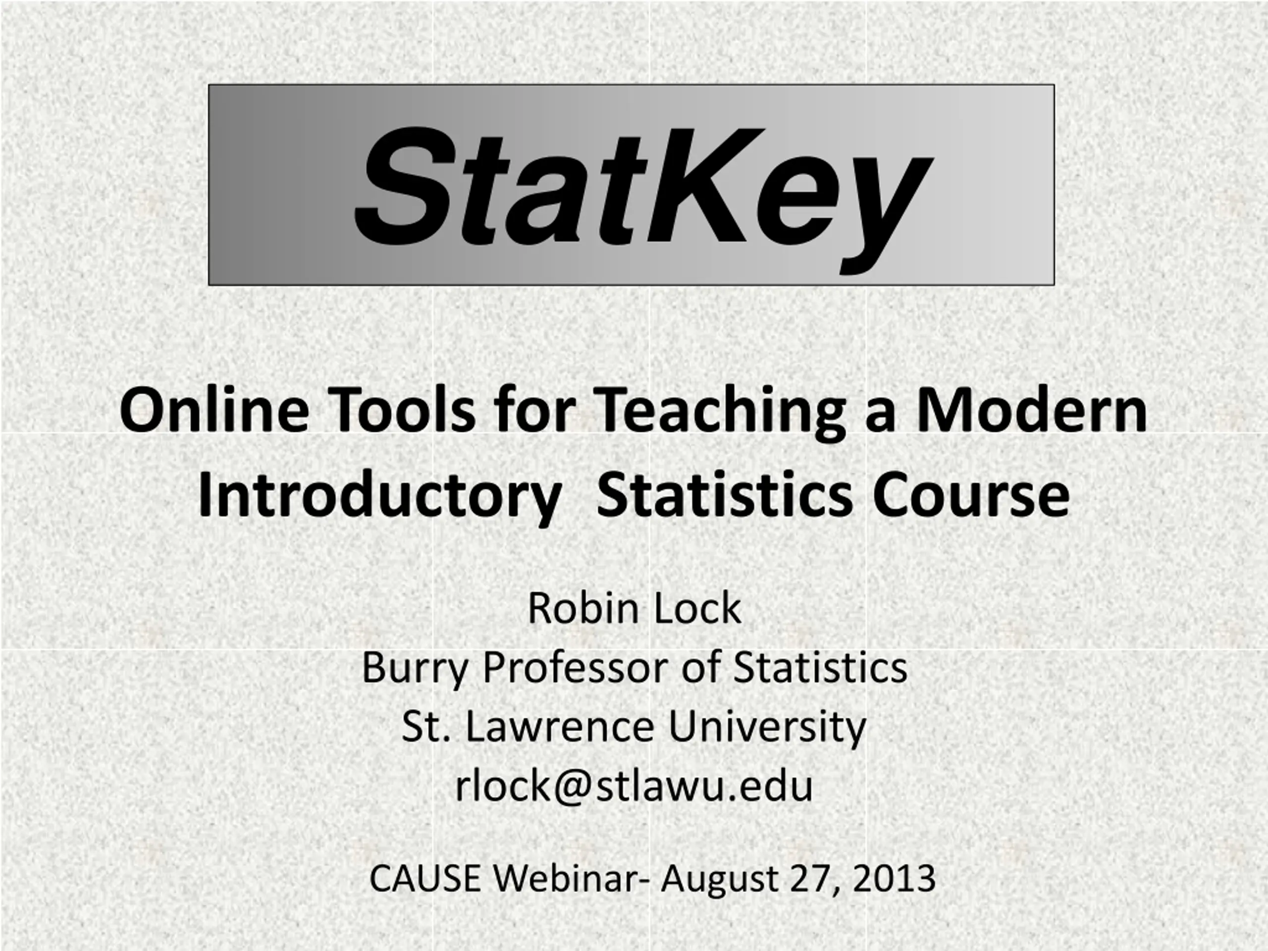 StatKey Online Tools for Teaching a Modern Introductory Statistics Course Robin Lock Burry Professor of Statistics St. Lawrence University rlock@stlawu.edu CAUSE Webinar- August 27, 2013